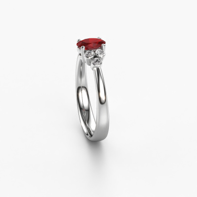Le nom de cette bague de fiançailles est Lucy 1. Elle est forgée en or 14 Carat et est sertie d'un rubis de 6x4 mm. Comment décririez-vous le style de l'amour de votre vie ? Est-ce qu'elle aime quelque chose qui est juste un peu plus différent que d'habitude ? Cette bague de fiançailles forgée en or blanc avec beaux est une superbe bague que vous pouvez personnaliser à votre guise. Un rubis est utilisé dans cette bague de fiançailles classiques. Ces rubis ont été sélectionnés avec soin, car nous pensons que sur votre bague de fiançailles, seule les plus belle pierre précieuses peuvent y briller, n'est-ce pas ? Ce bijou est faite pour briller sur votre doigt, chaque bijou est fabriqué à la main par nos orfèvres.Puisque nous concevons et livrons nos propres bijoux, nous sommes en mesure de vous proposer une bague de fiançailles à un prix que vous ne pourrez pas trouver ailleurs. Une alliance est fabriquée sur commande, ce qui permet d'éviter les excédents de matériel et nous permet de vous proposer une superbe offre de prix. Nous comprenons qu'acheter votre bague de fiançailles en ligne soit un risque, mais nous vous assistons volontiers dans le processus de conception, en tenant compte de votre budget. Notre équipe ajoute quotidiennement de nouveaux modèles à notre collection en ligne. Nos designers et orfèvres travaillent ensemble pour créer le meilleur design. Nous nous efforçons d'offrir une collection diversifiée de bijoux. Peut-être avez-vous déjà en tête un bijou en particulier ? Un bijou que vous avez trouvé quelque part. Veuillez nous contacter pour une consultation gratuite. Nous vous ferons une offre, basée sur un rapport qualité / prix juste, qui vous déconcertera.Pour vous faciliter la tâche, vous pouvez facilement nous retourner tout bijou commandé dans les 30 jours suivant la livraison.