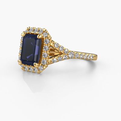 La bague de fiançailles mentionnée ci-dessus a été nommée Kimber EME. Ce type de bague de fiançailles est appelé une bague de fiançailles solitaire pavé car elle ne comporte qu’une seule pierre centrale et les tiges de la bague de fiançailles sont également pleins. La bague de fiançailles est faite dans une combinaison d'or 14 Carat et d’or jaune et a un saphir taille émeraude d’une de 8x6 mm, et des diamants synthétiques sont sertis sur les épaules de l’anneau. Chaque bijou est fabriquée par une équipe d'orfèvres et de designers motivés. Cela permettra à cette pièce unique d'attirer tous les regards. Cette bague de fiançailles solitaire pavé forgée en or jaune exclusives a un beau saphir taille émeraude comme pierre centrale, avec plus de saphir sertis dans la bague pour accentuer encore plus la présence de la pierre centrale. Le sertissage à griffes autour du saphir étant ouvert, le saphir capte la lumière de tous les côtés et brille de manière optimale. Ci-dessus, vous pouvez voir comment notre orfèvre travaille la bague de fiançailles avec une extrême précision dans les moindres détails, de telle sorte que le saphir élevé puisse attirer tous les regards. Quelle belle bague de fiançailles à offrir lors de votre demande en mariage à l'amour de votre vie, à votre centre rayonnant ! En combinant les dernières techniques modernes, associées à une fabrication ancienne, nous sommes en mesure de fabriquer nos bagues de fiançailles dans notre propre studio. Chaque bijou est fabriqué sur commande. Ceci est avantageux car nous sommes en mesure de vous proposer un prix que vous ne trouverez nulle part ailleurs.Notre équipe ajoute quotidiennement de nouveaux modèles à notre collection en ligne. Nos designers et orfèvres travaillent ensemble pour créer le meilleur design. Nous nous efforçons d'offrir une collection diversifiée de bijoux. Peut-être avez-vous déjà en tête un bijou en particulier ? Un bijou que vous avez trouvé quelque part. Veuillez nous contacter pour une consultation gratuite. Nous vous ferons une offre, basée sur un rapport qualité / prix juste, qui vous déconcertera.Pour vous faciliter la tâche, vous pouvez facilement nous retourner tout bijou commandé dans les 30 jours suivant la livraison.
