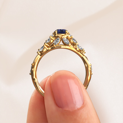 Nous avons donné le nom Samantha RND à la bague de fiançailles mentionnée ci-dessous. Ce type de bague de fiançailles est appelé une bague de fiançailles solitaire pavé car elle ne comporte qu’une seule pierre centrale et les tiges de la bague de fiançailles ont également une finition pleine. Cette bague de fiançailles est forgée en or 14 Carat et comporte un saphir ronds de 5 mm. Des diamants sont sertis dans les épaules latérales de l’anneau. Chaque bijou est faite avec passion et amour par l'un de nos maîtres orfèvres.. Cette bague de fiançailles solitaire pavé forgée en or jaune contemporains a un beau saphir ronds en guise de pierre centrale, avec plus de diamants dans l’anneau pour accentuer encore plus l’effet de la pierre centrale. Le sertissage à griffes autour du saphir étant ouvert, le saphir capte la lumière de tous les côtés et brille de manière optimale. Ci-dessus, vous pouvez voir comment notre orfèvre a travaillé la bague de fiançailles dans les moindres détails. de telle sorte que le saphir élevé puisse véritablement attirer tous les regards. Quelle belle bague de fiançailles à offre lors de votre demande en mariage à l'amour de votre vie, à votre centre rayonnant ! En combinant les dernières techniques modernes, associées à une fabrication ancienne, nous sommes en mesure de fabriquer nos bagues de fiançailles dans notre propre studio. Chaque bijou est fabriqué sur commande. Ceci est avantageux car nous sommes en mesure de vous proposer un prix que vous ne trouverez nulle part ailleurs.Notre équipe de designers talentueux et passionnés ajoute chaque jour de nouveaux modèles bague de fiançailles à notre collection en ligne. Notre objectif est de pouvoir vous offrir une grande variété de bijoux. N'hésitez pas à demander un devis si vous avez des souhaits spécifiques pour votre bague de fiançailles. Nous garantissons de vous faire une offre que vous ne pourrez pas refuser.Pour vous faciliter la tâche, vous pouvez facilement nous retourner tout bijou commandé dans les 30 jours suivant la livraison.
