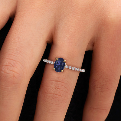 La bague de fiançailles mentionnée ci-dessus a été nommée Crystal OVL 4. Ce type de bague de fiançailles est appelé une bague de fiançailles solitaire pavé car elle ne comporte qu’une seule pierre centrale et les tiges de la bague de fiançailles sont également pleins. La bague de fiançailles est faite dans une combinaison d'or 14 Carat et d’or jaune et a un saphir ovale d’une de 7x5 mm, et des diamants sont sertis sur les épaules de l’anneau. Chaque bijou est faite avec passion et amour par l'un de nos maîtres orfèvres. Cette bague de fiançailles solitaire pavé forgée en or rose contemporains a un beau saphir ovale comme pierre centrale, avec plus de saphir sertis dans la bague pour accentuer encore plus la présence de la pierre centrale. Le sertissage à griffes autour du saphir étant ouvert, le saphir capte la lumière de tous les côtés et brille de manière optimale. Ci-dessus, vous pouvez voir comment notre orfèvre travaille la bague de fiançailles avec une extrême précision dans les moindres détails, de telle sorte que le saphir élevé puisse attirer tous les regards. Quelle belle bague de fiançailles à offrir lors de votre demande en mariage à l'amour de votre vie, à votre centre rayonnant ! Saviez-vous que nous offrons la garantie du meilleur prix pour votre bague de fiançailles? Cela est possible car tous nos bijoux sont fabriqués à la main dans notre propre atelier. Nous n'avons pas de frais de stocks qui sont coûteux, et nous fabriquons votre bague uniquement une fois que vous l'avez commandée. Grâce au fait que nous ayons toute la production du bijou en main, nous pouvons vous informer sur toutes les caractéristiques de cette bague de fiançailles. C’est précisément parce que l’achat d’une bague en ligne est une expérience excitante que nous comprenons qu’il est plus confortable pour vous de connaître toutes les caractéristiques de votre bague.Notre équipe ajoute quotidiennement de nouveaux modèles à notre collection en ligne. Nos designers et orfèvres travaillent ensemble pour créer le meilleur design. Nous nous efforçons d'offrir une collection diversifiée de bijoux. Peut-être avez-vous déjà en tête un bijou en particulier ? Un bijou que vous avez trouvé quelque part. Veuillez nous contacter pour une consultation gratuite. Nous vous ferons une offre, basée sur un rapport qualité / prix juste, qui vous déconcertera.Pour vous faciliter la tâche, vous pouvez facilement nous retourner tout bijou commandé dans les 30 jours suivant la livraison.
