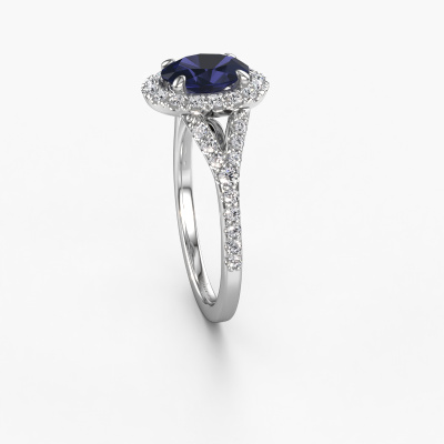 La bague de fiançailles mentionnée ci-dessus a été nommée Kimber OVL. Ce type de bague de fiançailles est appelé une bague de fiançailles solitaire pavé car elle ne comporte qu’une seule pierre centrale et les tiges de la bague de fiançailles sont également pleins. La bague de fiançailles est faite dans une combinaison d'or et d’platine et a un saphir ovale d’une de 8x6 mm, et des diamants synthétiques sont sertis sur les épaules de l’anneau. Chaque bijou est faite avec passion et amour par l'un de nos maîtres orfèvres. Cette bague de fiançailles solitaire pavé forgée en platine exclusives a un beau saphir ovale comme pierre centrale, avec plus de saphir sertis dans la bague pour accentuer encore plus la présence de la pierre centrale. Le sertissage à griffes autour du saphir étant ouvert, le saphir capte la lumière de tous les côtés et brille de manière optimale. Ci-dessus, vous pouvez voir comment notre orfèvre travaille la bague de fiançailles avec une extrême précision dans les moindres détails, de telle sorte que le saphir élevé puisse attirer tous les regards. Quelle belle bague de fiançailles à offrir lors de votre demande en mariage à l'amour de votre vie, à votre centre rayonnant ! En combinant les dernières techniques modernes, associées à une fabrication ancienne, nous sommes en mesure de fabriquer nos bagues de fiançailles dans notre propre studio. Chaque bijou est fabriqué sur commande. Ceci est avantageux car nous sommes en mesure de vous proposer un prix que vous ne trouverez nulle part ailleurs.Notre équipe ajoute quotidiennement de nouveaux modèles à notre collection en ligne. Nos designers et orfèvres travaillent ensemble pour créer le meilleur design. Nous nous efforçons d'offrir une collection diversifiée de bijoux. Peut-être avez-vous déjà en tête un bijou en particulier ? Un bijou que vous avez trouvé quelque part. Veuillez nous contacter pour une consultation gratuite. Nous vous ferons une offre, basée sur un rapport qualité / prix juste, qui vous déconcertera.Pour vous faciliter la tâche, vous pouvez facilement nous retourner tout bijou commandé dans les 30 jours suivant la livraison.