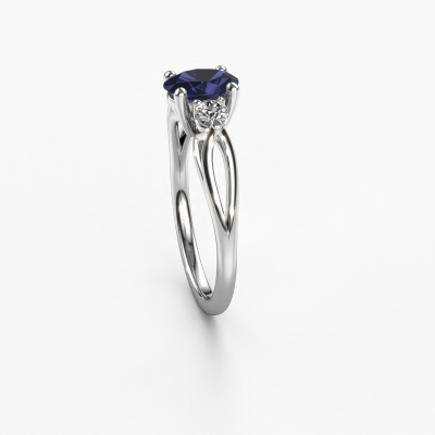 Cette bague de fiançailles porte le nom Amie OVL. Cette bague de fiançailles forgée en or est sertie d’un saphir de 7x5 mm. Qu'est-ce qui rend votre relation unique ? Qu'est-ce que qui fait que vous souhaitiez qu’elle devienne votre femmes ? Cet anneau unique que vous avez ensemble peut être reflété dans une bague unique. Une bague de fiançailles trois pierres unique qui est seulement créée pour elle. Et c'est la raison pour laquelle cette bague de fiançailles lui ira parfaitement. Chaque détail de cette bague de fiançailles ci-dessous forgée en platine sertie d’un saphir est composée, travaillée et polie à la main par notre orfèvre dans notre atelier. Le résultat final est une magnifique bague de fiançailles, unique et parfaitement forgée dans les moindres détails ! Ce résultat est ce que nos orfèvres recherchent à tout prix ! Ce bijou est fabriquées avec passion et amour par l'un de nos maîtres orfèvres.Qu'y a-t-il dorénavant de plus beau qu'une bague de fiançailles fantaisie conçue par vous-même et fabriquée à la main par nous. Vous pouvez personnaliser chaque modèle avec les différents métaux précieux et pierres précieuses. De cette façon, vous pourrez créer une bague de fiançailles unique. Cette bague peut être mise en place de plusieurs façons. Bien sûr, vous pouvez toujours nous contacter et nous serons heureux de vous aider à composer votre bague de fiançailles fantaisie Amie OVL. Vous aimez le design, mais vous souhaitez tout de même quelque chose qui vous convienne plus, ou bien vous souhaitez une pierre précieuse dans les bijoux que vous ne pouvez pas choisir sur notre site, contactez-nous et nous vous aiderons.Avez-vous déjà des bague de fiançailles spécifiques en tête ? Une bague de fiançailles que vous avez vu quelque part. N'hésitez pas à nous faire part de vos souhaits et nous transformerons votre design en des bague de fiançailles uniques. Vous êtes en mesure de suivre l'évolution de la conception de vos bague de fiançailles car nous utilisons des dessins en 3D. Cela vous donnera un aperçu réaliste de votre design. Nous vous enverrons volontiers une offre sans engagement basée sur un rapport qualité / prix juste. Elle va vous étonner.Pour vous faciliter la tâche, vous pouvez facilement nous retourner tout bijou commandé dans les 30 jours suivant la livraison.