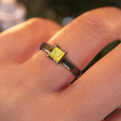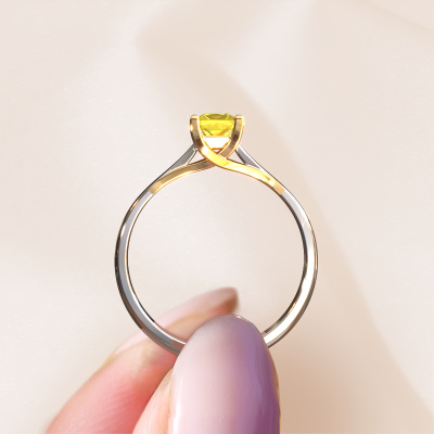 Nous avons donné le nom Mia Square à la bague de fiançailles mentionnée ci-dessous. Ce type de bague de fiançailles est appelée une bague de fiançailles solitaire car elle ne contient qu’une seule pierre précieuse. La bague de fiançailles est forgée en or 14 Carat et comporte un saphir jaune princesse d’une de 4 mm. L’avantage de notre outil de configuration est que vous pouvez choisir les éléments de votre propres bijou pour créer vous-même votre propre bijou. Cette bague de fiançailles solitaire est faite à partir d’une combinaison de métal précieux d’or et d’or jaune, mais vous pouvez également choisir un or d’une autre couleur. Chaque bijou est fabriquée par une équipe d'orfèvres et de designers motivés. Cela permettra à cette pièce unique d'attirer tous les regards. La bague de fiançailles solitaire est une large bague de fiançailles. C'est précisément grâce au fait que le sertissage de chaton soit ouvert que l'incidence de la lumière crée un effet magnifique sur la pierre précieuse. Puisque la pierre précieuse choisie est sertie en élévation sur la bague de fiançailles, cette bague de fiançailles modernes attirera tous les regards une loyautés finie. Nous fabriquerons tous les détails de cette bague de fiançailles solitaire avec le plus grand soin, afin que vous puissiez bientôt couronner votre demande en mariage avec une bague unique, en particulier pour l'amour de votre vie ! Qu'y a-t-il dorénavant de plus beau qu'une bague de fiançailles modernes conçue par vous-même et fabriquée à la main par nous. Vous pouvez personnaliser chaque modèle avec les différents métaux précieux et pierres précieuses. De cette façon, vous pourrez créer une bague de fiançailles unique. Cette bague peut être mise en place de plusieurs façons. Bien sûr, vous pouvez toujours nous contacter et nous serons heureux de vous aider à composer votre bague de fiançailles modernes Mia Square. Vous aimez le design, mais vous souhaitez tout de même quelque chose qui vous convienne plus, ou bien vous souhaitez une pierre précieuse dans les bijoux que vous ne pouvez pas choisir sur notre site, contactez-nous et nous vous aiderons.Avez-vous déjà des bague de fiançailles spécifiques en tête ? Une bague de fiançailles que vous avez vu quelque part. N'hésitez pas à nous faire part de vos souhaits et nous transformerons votre design en des bague de fiançailles uniques. Vous êtes en mesure de suivre l'évolution de la conception de vos bague de fiançailles car nous utilisons des dessins en 3D. Cela vous donnera un aperçu réaliste de votre design. Nous vous enverrons volontiers une offre sans engagement basée sur un rapport qualité / prix juste. Elle va vous étonner.Pour vous faciliter la tâche, vous pouvez facilement nous retourner tout bijou commandé dans les 30 jours suivant la livraison.
