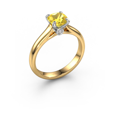 Nous avons donné le nom Valorie cus 1 à la bague de fiançailles mentionnée ci-dessous. Ce type de bague de fiançailles est appelée une bague de fiançailles solitaire car elle ne contient qu’une seule pierre précieuse. La bague de fiançailles est forgée en or 14 Carat et comporte un saphir jaune coussin d’une de 6 mm. L’avantage de notre outil de configuration est que vous pouvez choisir les éléments de votre propres bijou pour créer vous-même votre propre bijou. Cette bague de fiançailles solitaire est faite à partir d’une combinaison de métal précieux d’or et d’or blanc, mais vous pouvez également choisir un or d’une autre couleur. Chaque bijou est fabriquées avec passion et amour par l'un de nos maîtres orfèvres. La bague de fiançailles solitaire est une large bague de fiançailles. C'est précisément grâce au fait que le sertissage de chaton soit ouvert que l'incidence de la lumière crée un effet magnifique sur la pierre précieuse. Puisque la pierre précieuse choisie est sertie en élévation sur la bague de fiançailles, cette bague de fiançailles classiques attirera tous les regards une loyautés finie. Nous fabriquerons tous les détails de cette bague de fiançailles solitaire avec le plus grand soin, afin que vous puissiez bientôt couronner votre demande en mariage avec une bague unique, en particulier pour l'amour de votre vie ! Vous avez peut-être remarqué que nos prix sont en moyenne inférieurs de 30% à ceux d'un autre bijoutier. Et ce alors que la qualité de nos bijoux est même plus élevée dans la plupart des cas ! En effet, nos orfèvres fabriquent votre bague de fiançailles directement dans notre propre atelier. Cela signifie que nous n'avons pas à inclure des frais de stocks coûteux et que nous pouvons travailler n'importe quel détail directement sur votre bague de fiançailles.Avez-vous déjà des bague de fiançailles spécifiques en tête ? Une bague de fiançailles que vous avez vu quelque part. N'hésitez pas à nous faire part de vos souhaits et nous transformerons votre design en des bague de fiançailles uniques. Vous êtes en mesure de suivre l'évolution de la conception de vos bague de fiançailles car nous utilisons des dessins en 3D. Cela vous donnera un aperçu réaliste de votre design. Nous vous enverrons volontiers une offre sans engagement basée sur un rapport qualité / prix juste. Elle va vous étonner.Pour vous faciliter la tâche, vous pouvez facilement nous retourner tout bijou commandé dans les 30 jours suivant la livraison.