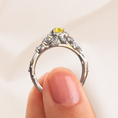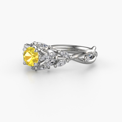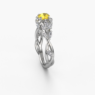 Nous avons donné le nom Samantha RND à la bague de fiançailles mentionnée ci-dessous. Ce type de bague de fiançailles est appelé une bague de fiançailles solitaire pavé car elle ne comporte qu’une seule pierre centrale et les tiges de la bague de fiançailles ont également une finition pleine. Cette bague de fiançailles est forgée en or 14 Carat et comporte un saphir jaune ronds de 5 mm. Des diamants sont sertis dans les épaules latérales de l’anneau. Chaque bijou est faite avec passion et amour par l'un de nos maîtres orfèvres.. Cette bague de fiançailles solitaire pavé forgée en or blanc contemporains a un beau saphir jaune ronds en guise de pierre centrale, avec plus de diamants dans l’anneau pour accentuer encore plus l’effet de la pierre centrale. Le sertissage à griffes autour du saphir jaune étant ouvert, le saphir jaune capte la lumière de tous les côtés et brille de manière optimale. Ci-dessus, vous pouvez voir comment notre orfèvre a travaillé la bague de fiançailles dans les moindres détails. de telle sorte que le saphir jaune élevé puisse véritablement attirer tous les regards. Quelle belle bague de fiançailles à offre lors de votre demande en mariage à l'amour de votre vie, à votre centre rayonnant ! En combinant les dernières techniques modernes, associées à une fabrication ancienne, nous sommes en mesure de fabriquer nos bagues de fiançailles dans notre propre studio. Chaque bijou est fabriqué sur commande. Ceci est avantageux car nous sommes en mesure de vous proposer un prix que vous ne trouverez nulle part ailleurs.Notre équipe de designers talentueux et passionnés ajoute chaque jour de nouveaux modèles bague de fiançailles à notre collection en ligne. Notre objectif est de pouvoir vous offrir une grande variété de bijoux. N'hésitez pas à demander un devis si vous avez des souhaits spécifiques pour votre bague de fiançailles. Nous garantissons de vous faire une offre que vous ne pourrez pas refuser.Pour vous faciliter la tâche, vous pouvez facilement nous retourner tout bijou commandé dans les 30 jours suivant la livraison.