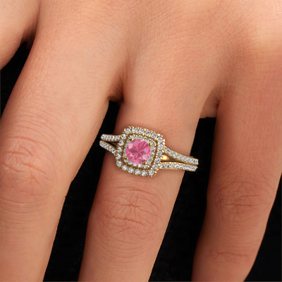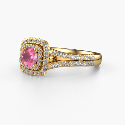 La bague de fiançailles mentionnée ci-dessus a été nommée Annette. Ce type de bague de fiançailles est appelé une bague de fiançailles halo car elle ne comporte qu’une seule pierre centrale et les tiges de la bague de fiançailles sont également pleins. La bague de fiançailles est faite dans une combinaison d'or 14 Carat et d’or jaune et a un saphir rose ronds d’une de 5 mm, et des diamants sont sertis sur les épaules de l’anneau. Chaque bijou est fabriquée spécialement pour vous par nos maîtres orfèvres dans notre propre atelier. Cette bague de fiançailles halo forgée en or jaune vintage a un beau saphirs roses ronds comme pierre centrale, avec plus de saphirs roses sertis dans la bague pour accentuer encore plus la présence de la pierre centrale. Le sertissage à griffes autour du saphir rose étant ouvert, le saphir rose capte la lumière de tous les côtés et brille de manière optimale. Ci-dessus, vous pouvez voir comment notre orfèvre travaille la bague de fiançailles avec une extrême précision dans les moindres détails, de telle sorte que le saphir rose élevé puisse attirer tous les regards. Quelle belle bague de fiançailles à offrir lors de votre demande en mariage à l'amour de votre vie, à votre centre rayonnant ! Saviez-vous que nous offrons la garantie du meilleur prix pour votre bague de fiançailles? Cela est possible car tous nos bijoux sont fabriqués à la main dans notre propre atelier. Nous n'avons pas de frais de stocks qui sont coûteux, et nous fabriquons votre bague uniquement une fois que vous l'avez commandée. Grâce au fait que nous ayons toute la production du bijou en main, nous pouvons vous informer sur toutes les caractéristiques de cette bague de fiançailles. C’est précisément parce que l’achat d’une bague en ligne est une expérience excitante que nous comprenons qu’il est plus confortable pour vous de connaître toutes les caractéristiques de votre bague.Avez-vous déjà des bague de fiançailles spécifiques en tête ? Une bague de fiançailles que vous avez vu quelque part. N'hésitez pas à nous faire part de vos souhaits et nous transformerons votre design en des bague de fiançailles uniques. Vous êtes en mesure de suivre l'évolution de la conception de vos bague de fiançailles car nous utilisons des dessins en 3D. Cela vous donnera un aperçu réaliste de votre design. Nous vous enverrons volontiers une offre sans engagement basée sur un rapport qualité / prix juste. Elle va vous étonner.Pour vous faciliter la tâche, vous pouvez facilement nous retourner tout bijou commandé dans les 30 jours suivant la livraison.