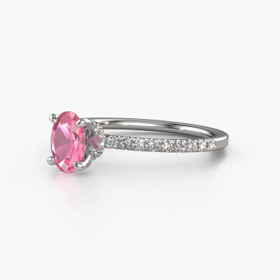 La bague de fiançailles mentionnée ci-dessus a été nommée Crystal OVL 4. Ce type de bague de fiançailles est appelé une bague de fiançailles solitaire pavé car elle ne comporte qu’une seule pierre centrale et les tiges de la bague de fiançailles sont également pleins. La bague de fiançailles est faite dans une combinaison d'or et d’platine et a un saphir rose ovale d’une de 7x5 mm, et des diamants sont sertis sur les épaules de l’anneau. Chaque bijou est faite avec passion et amour par l'un de nos maîtres orfèvres. Cette bague de fiançailles solitaire pavé forgée en platine contemporains a un beau saphirs roses ovale comme pierre centrale, avec plus de saphirs roses sertis dans la bague pour accentuer encore plus la présence de la pierre centrale. Le sertissage à griffes autour du saphir rose étant ouvert, le saphir rose capte la lumière de tous les côtés et brille de manière optimale. Ci-dessus, vous pouvez voir comment notre orfèvre travaille la bague de fiançailles avec une extrême précision dans les moindres détails, de telle sorte que le saphir rose élevé puisse attirer tous les regards. Quelle belle bague de fiançailles à offrir lors de votre demande en mariage à l'amour de votre vie, à votre centre rayonnant ! Saviez-vous que nous offrons la garantie du meilleur prix pour votre bague de fiançailles? Cela est possible car tous nos bijoux sont fabriqués à la main dans notre propre atelier. Nous n'avons pas de frais de stocks qui sont coûteux, et nous fabriquons votre bague uniquement une fois que vous l'avez commandée. Grâce au fait que nous ayons toute la production du bijou en main, nous pouvons vous informer sur toutes les caractéristiques de cette bague de fiançailles. C’est précisément parce que l’achat d’une bague en ligne est une expérience excitante que nous comprenons qu’il est plus confortable pour vous de connaître toutes les caractéristiques de votre bague.Notre équipe ajoute quotidiennement de nouveaux modèles à notre collection en ligne. Nos designers et orfèvres travaillent ensemble pour créer le meilleur design. Nous nous efforçons d'offrir une collection diversifiée de bijoux. Peut-être avez-vous déjà en tête un bijou en particulier ? Un bijou que vous avez trouvé quelque part. Veuillez nous contacter pour une consultation gratuite. Nous vous ferons une offre, basée sur un rapport qualité / prix juste, qui vous déconcertera.Pour vous faciliter la tâche, vous pouvez facilement nous retourner tout bijou commandé dans les 30 jours suivant la livraison.