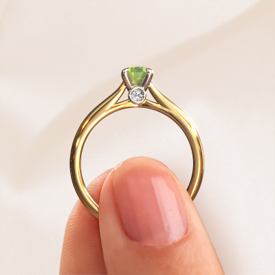Nous avons donné le nom Valorie ovl 1 à la bague de fiançailles mentionnée ci-dessous. Ce type de bague de fiançailles est appelée une bague de fiançailles solitaire car elle ne contient qu’une seule pierre précieuse. La bague de fiançailles est forgée en or 14 Carat et comporte un péridot ovale d’une la de 6.5x4.5 mm. Cette bague de fiançailles solitaire forgée en or jaune modernes sertie d’un beau péridot ovale est une magnifique bague de fiançailles. Grâce au fait que le sertissage de chaton soit ouvert, l’effet de lumière sur la pierre précieuse est optimal. Nous plaçons également la pierre précieuse en élévation sur la bague, ce qui la rendra encore plus frappante. Par exemple, le diamants est une belle pierre précieuse à offrir à l'amour de votre vie, car il symbolise l'amour éternel et la pureté. Et ce symbole rayonne au milieu de cette bague solitaire. Ainsi, chaque pierre précieuse a une belle signification symbolique. Vous pouvez concevoir vous-même cette bague de fiançailles solitaire dans différentes combinaisons de métaux précieux. Celle-ci a une combinaison d'or 14 Carat avec or de l’rouge. Chaque bijou est faite spécialement pour vous, avec une attention particulière portée aux détails et au design.Qu'y a-t-il dorénavant de plus beau qu'une bague de fiançailles modernes conçue par vous-même et fabriquée à la main par nous. Vous pouvez personnaliser chaque modèle avec les différents métaux précieux et pierres précieuses. De cette façon, vous pourrez créer une bague de fiançailles unique. Cette bague peut être mise en place de plusieurs façons. Bien sûr, vous pouvez toujours nous contacter et nous serons heureux de vous aider à composer votre bague de fiançailles modernes Valorie ovl 1. Vous aimez le design, mais vous souhaitez tout de même quelque chose qui vous convienne plus, ou bien vous souhaitez une pierre précieuse dans les bijoux que vous ne pouvez pas choisir sur notre site, contactez-nous et nous vous aiderons.Avez-vous déjà des bague de fiançailles spécifiques en tête ? Une bague de fiançailles que vous avez vu quelque part. N'hésitez pas à nous faire part de vos souhaits et nous transformerons votre design en des bague de fiançailles uniques. Vous êtes en mesure de suivre l'évolution de la conception de vos bague de fiançailles car nous utilisons des dessins en 3D. Cela vous donnera un aperçu réaliste de votre design. Nous vous enverrons volontiers une offre sans engagement basée sur un rapport qualité / prix juste. Elle va vous étonner.Pour vous faciliter la tâche, vous pouvez facilement nous retourner tout bijou commandé dans les 30 jours suivant la livraison.