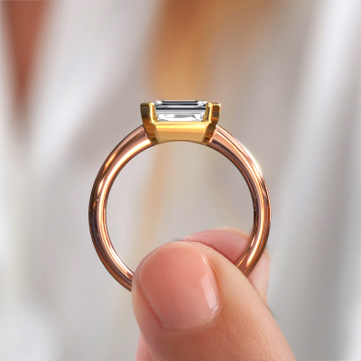 Nous avons donné le nom Tayler EME à la bague de fiançailles mentionnée ci-dessous. Ce type de bague de fiançailles est appelée une bague de fiançailles solitaire car elle ne contient qu’une seule pierre précieuse. La bague de fiançailles est forgée en or 14 Carat et comporte un diamant taille émeraude d’une la de 1.50 crt. Cette bague de fiançailles solitaire forgée en or rose modernes sertie d’un beau diamant taille émeraude est une magnifique bague de fiançailles. Grâce au fait que le sertissage de chaton soit ouvert, l’effet de lumière sur la pierre précieuse est optimal. Nous plaçons également la pierre précieuse en élévation sur la bague, ce qui la rendra encore plus frappante. Par exemple, le diamants est une belle pierre précieuse à offrir à l'amour de votre vie, car il symbolise l'amour éternel et la pureté. Et ce symbole rayonne au milieu de cette bague solitaire. Ainsi, chaque pierre précieuse a une belle signification symbolique. Vous pouvez concevoir vous-même cette bague de fiançailles solitaire dans différentes combinaisons de métaux précieux. Celle-ci a une combinaison d'or 14 Carat avec or de l’rouge. Chaque bijou est faite pour briller sur votre doigt, chaque bijou est fabriqué à la main par nos orfèvres.Saviez-vous que nous offrons la garantie du meilleur prix pour votre bague de fiançailles? Cela est possible car tous nos bijoux sont fabriqués à la main dans notre propre atelier. Nous n'avons pas de frais de stocks qui sont coûteux, et nous fabriquons votre bague uniquement une fois que vous l'avez commandée. Grâce au fait que nous ayons toute la production du bijou en main, nous pouvons vous informer sur toutes les caractéristiques de cette bague de fiançailles. C’est précisément parce que l’achat d’une bague en ligne est une expérience excitante que nous comprenons qu’il est plus confortable pour vous de connaître toutes les caractéristiques de votre bague.Notre équipe de designers talentueux et passionnés ajoute chaque jour de nouveaux modèles bague de fiançailles à notre collection en ligne. Notre objectif est de pouvoir vous offrir une grande variété de bijoux. N'hésitez pas à demander un devis si vous avez des souhaits spécifiques pour votre bague de fiançailles. Nous garantissons de vous faire une offre que vous ne pourrez pas refuser.Pour vous faciliter la tâche, vous pouvez facilement nous retourner tout bijou commandé dans les 30 jours suivant la livraison.
