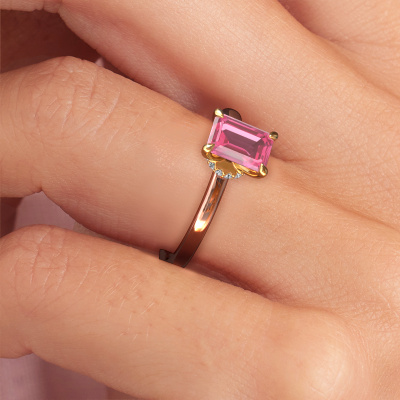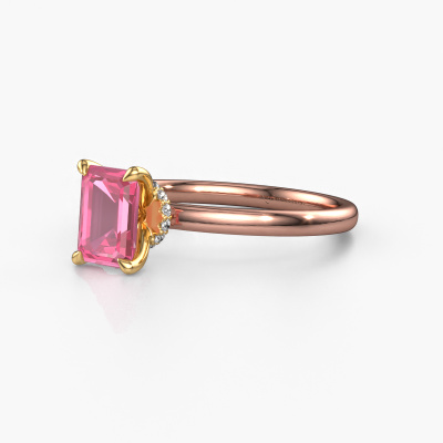 Nous avons donné le nom Crystal EME 3 à la bague de fiançailles mentionnée ci-dessous. Ce type de bague de fiançailles est appelée une bague de fiançailles solitaire car elle ne contient qu’une seule pierre précieuse. La bague de fiançailles est forgée en or 14 Carat et comporte un saphir rose taille émeraude d’une la de 7x5 mm. Cette bague de fiançailles solitaire forgée en or rose classiques sertie d’un beau saphir rose taille émeraude est une magnifique bague de fiançailles. Grâce au fait que le sertissage de chaton soit ouvert, l’effet de lumière sur la pierre précieuse est optimal. Nous plaçons également la pierre précieuse en élévation sur la bague, ce qui la rendra encore plus frappante. Par exemple, le diamants est une belle pierre précieuse à offrir à l'amour de votre vie, car il symbolise l'amour éternel et la pureté. Et ce symbole rayonne au milieu de cette bague solitaire. Ainsi, chaque pierre précieuse a une belle signification symbolique. Vous pouvez concevoir vous-même cette bague de fiançailles solitaire dans différentes combinaisons de métaux précieux. Celle-ci a une combinaison d'or 14 Carat avec or de l’rouge. Chaque bijou est fabriquée par une équipe d'orfèvres et de designers motivés. Cela permettra à cette pièce unique d'attirer tous les regards.Qu'y a-t-il dorénavant de plus beau qu'une bague de fiançailles classiques conçue par vous-même et fabriquée à la main par nous. Vous pouvez personnaliser chaque modèle avec les différents métaux précieux et pierres précieuses. De cette façon, vous pourrez créer une bague de fiançailles unique. Cette bague peut être mise en place de plusieurs façons. Bien sûr, vous pouvez toujours nous contacter et nous serons heureux de vous aider à composer votre bague de fiançailles classiques Crystal EME 3. Vous aimez le design, mais vous souhaitez tout de même quelque chose qui vous convienne plus, ou bien vous souhaitez une pierre précieuse dans les bijoux que vous ne pouvez pas choisir sur notre site, contactez-nous et nous vous aiderons.Avez-vous déjà des bague de fiançailles spécifiques en tête ? Une bague de fiançailles que vous avez vu quelque part. N'hésitez pas à nous faire part de vos souhaits et nous transformerons votre design en des bague de fiançailles uniques. Vous êtes en mesure de suivre l'évolution de la conception de vos bague de fiançailles car nous utilisons des dessins en 3D. Cela vous donnera un aperçu réaliste de votre design. Nous vous enverrons volontiers une offre sans engagement basée sur un rapport qualité / prix juste. Elle va vous étonner.Pour vous faciliter la tâche, vous pouvez facilement nous retourner tout bijou commandé dans les 30 jours suivant la livraison.