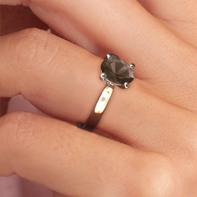 Nous avons donné le nom Mignon ovl 1 à la bague de fiançailles mentionnée ci-dessous. Ce type de bague de fiançailles est appelée une bague de fiançailles solitaire car elle ne contient qu’une seule pierre précieuse. La bague de fiançailles est forgée en or et comporte un quartz fumé ovale d’une la de 8x6 mm. Cette bague de fiançailles solitaire forgée en platine traditionnelles sertie d’un beau quartz fumé ovale est une magnifique bague de fiançailles. Grâce au fait que le sertissage de chaton soit ouvert, l’effet de lumière sur la pierre précieuse est optimal. Nous plaçons également la pierre précieuse en élévation sur la bague, ce qui la rendra encore plus frappante. Par exemple, le diamants est une belle pierre précieuse à offrir à l'amour de votre vie, car il symbolise l'amour éternel et la pureté. Et ce symbole rayonne au milieu de cette bague solitaire. Ainsi, chaque pierre précieuse a une belle signification symbolique. Vous pouvez concevoir vous-même cette bague de fiançailles solitaire dans différentes combinaisons de métaux précieux. Celle-ci a une combinaison d'or avec or de l’rouge. Chaque bijou est fabriquée par une équipe d'orfèvres et de designers motivés. Cela permettra à cette pièce unique d'attirer tous les regards.En combinant les dernières techniques modernes, associées à une fabrication ancienne, nous sommes en mesure de fabriquer nos bagues de fiançailles dans notre propre studio. Chaque bijou est fabriqué sur commande. Ceci est avantageux car nous sommes en mesure de vous proposer un prix que vous ne trouverez nulle part ailleurs.Notre équipe de designers talentueux et passionnés ajoute chaque jour de nouveaux modèles bague de fiançailles à notre collection en ligne. Notre objectif est de pouvoir vous offrir une grande variété de bijoux. N'hésitez pas à demander un devis si vous avez des souhaits spécifiques pour votre bague de fiançailles. Nous garantissons de vous faire une offre que vous ne pourrez pas refuser.Pour vous faciliter la tâche, vous pouvez facilement nous retourner tout bijou commandé dans les 30 jours suivant la livraison.