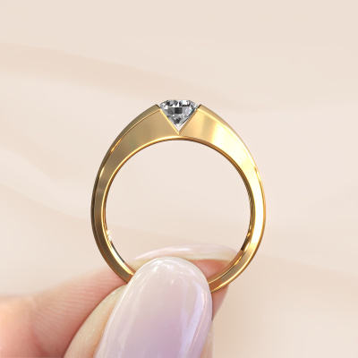 Cette bague de fiançailles porte le nom de Theresia. La bague de fiançailles est en or 14 carats et avec un diamant de 0.50 crt. Le large de cette bague de fiançailles à tension est que l'attention est vraiment attirée sur le diamant. Notre orfèvre utilise des techniques spéciales pour la fabrication de cette bague de fiançailles, de sorte que le diamant soit calé par l'anneau de la bague forgée en or jaune. En conséquence, la lumière a beaucoup de jeu libre sur la pierre précieuse, ce qui crée un bel éclat et une belle allure. Une belle pièce d'artisanat ! Le résultat est une bague unique, d'aspect modernes, réalisée à la main avec passion par notre orfèvre, spécialement pour l'amour de votre vie ! Nous recommandons une pierre un peu plus dure pour cette bague de fiançailles, telle qu'un diamant ou un saphire, en raison des grandes forces exercées sur la pierre précieuse. Ce bijou est fabriquée spécialement pour vous par nos maîtres orfèvres dans notre propre atelier. Qu'y a-t-il dorénavant de plus beau qu'une bague de fiançailles modernes conçue par vous-même et fabriquée à la main par nous. Vous pouvez personnaliser chaque modèle avec les différents métaux précieux et pierres précieuses. De cette façon, vous pourrez créer une bague de fiançailles unique. Cette bague peut être mise en place de plusieurs façons. Bien sûr, vous pouvez toujours nous contacter et nous serons heureux de vous aider à composer votre bague de fiançailles modernes Theresia. Vous aimez le design, mais vous souhaitez tout de même quelque chose qui vous convienne plus, ou bien vous souhaitez une pierre précieuse dans les bijoux que vous ne pouvez pas choisir sur notre site, contactez-nous et nous vous aiderons. Notre équipe ajoute quotidiennement de nouveaux modèles à notre collection en ligne. Nos designers et orfèvres travaillent ensemble pour créer le meilleur design. Nous nous efforçons d'offrir une collection diversifiée de bijoux. Peut-être avez-vous déjà en tête un bijou en particulier ? Un bijou que vous avez trouvé quelque part. Veuillez nous contacter pour une consultation gratuite. Nous vous ferons une offre, basée sur un rapport qualité / prix juste, qui vous déconcertera. Pour vous faciliter la tâche, vous pouvez facilement nous retourner tout bijou commandé dans les 30 jours suivant la livraison.