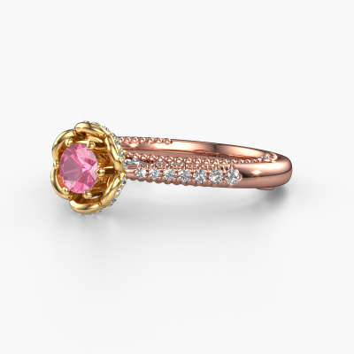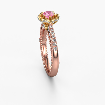Nous avons donné le nom Abbey à cette bague de fiançailles. Cette bague de fiançailles millegrain forgée en or 14 Carat est sertie d’un saphir rose de 4.2 mm. Votre petite amie a-t-elle un faible pour le vintage ? Vous pouvez donc être sûr que cette bague de fiançailles forgée en or rose conviendra à son style ! Un nouveau modèle basé sur des motifs vintage. Un peu de rêve, un beau design, surtout si vous l’ajustez encore plus à votre goût. De magnifiques saphirs roses ont été sertis sur cette bague de fiançailles solitaire pavé vintage. Comme vous pouvez le constater, vous pouvez choisir vous-même une pierre précieuse qui convient à votre petite amie. Chaque pierre précieuse est soigneusement sélectionnée par nos commerçants du monde entier. Notre orfèvre ne veut travailler que les plus belles pierres précieuses sur votre bijou. Après tout, c'est la couronne de son travail ! Chaque bijou est faite spécialement pour vous, avec une attention particulière portée aux détails et au design.Qu'y a-t-il dorénavant de plus beau qu'une bague de fiançailles vintage conçue par vous-même et fabriquée à la main par nous. Vous pouvez personnaliser chaque modèle avec les différents métaux précieux et pierres précieuses. De cette façon, vous pourrez créer une bague de fiançailles unique. Cette bague peut être mise en place de plusieurs façons. Bien sûr, vous pouvez toujours nous contacter et nous serons heureux de vous aider à composer votre bague de fiançailles vintage Abbey. Vous aimez le design, mais vous souhaitez tout de même quelque chose qui vous convienne plus, ou bien vous souhaitez une pierre précieuse dans les bijoux que vous ne pouvez pas choisir sur notre site, contactez-nous et nous vous aiderons.Notre équipe de designers talentueux et passionnés ajoute chaque jour de nouveaux modèles bague de fiançailles à notre collection en ligne. Notre objectif est de pouvoir vous offrir une grande variété de bijoux. N'hésitez pas à demander un devis si vous avez des souhaits spécifiques pour votre bague de fiançailles. Nous garantissons de vous faire une offre que vous ne pourrez pas refuser.Pour vous faciliter la tâche, vous pouvez facilement nous retourner tout bijou commandé dans les 30 jours suivant la livraison.
