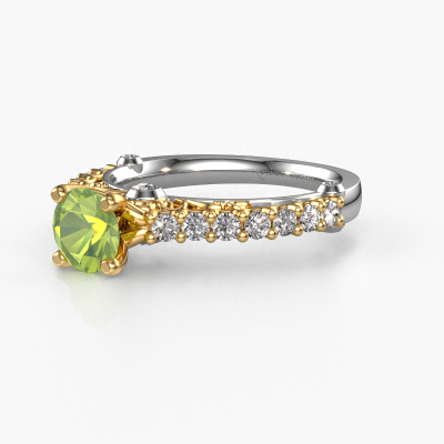 Cette bague de fiançailles spéciales porte le nom Shaunda. Cette bague forgée en or 14 Carat est sertie d’un péridot de 6 mm. Il y a une personne dans votre vie qui quand elle se présente devant vous, votre cœur bat plus vite, ce qui est vraiment unique pour vous. Et c’est précisément cette personne qui mérite quelque chose de spécial, quelque chose d’unique et qui a été conçu spécialement pour elle. Nous soupçonnons que cette bague de fiançailles s'intègre bien dans cette situation. Tous les détails de cette bague de fiançailles unique forgée en or blanc sont composés, travaillés et polis à la main par notre orfèvre dans l'atelier ci-dessous. Notre objectif est que la conception et la composition de la bague de fiançailles renforcent et rayonnent les beaux péridots. Un travail très précis, qui donne finalement à un résultat magnifique. Et c’est exactement ce que nous voulons, cela nous rend très enthousiastes. L’avantage de notre outil de configuration est que vous pouvez concevoir entièrement vos propres bijoux pour créer votre propre bijou. Cette bague de fiançailles solitaire pavé est faite à partir de la combinaison de métaux précieux : de l’or avec de l’or jaune, mais vous pouvez également choisir une autre couleur d’or. Chaque bijou est fabriquées avec passion et amour par l'un de nos maîtres orfèvres.En combinant les dernières techniques modernes, associées à une fabrication ancienne, nous sommes en mesure de fabriquer nos bagues de fiançailles dans notre propre studio. Chaque bijou est fabriqué sur commande. Ceci est avantageux car nous sommes en mesure de vous proposer un prix que vous ne trouverez nulle part ailleurs.Notre équipe de designers talentueux et passionnés ajoute chaque jour de nouveaux modèles bague de fiançailles à notre collection en ligne. Notre objectif est de pouvoir vous offrir une grande variété de bijoux. N'hésitez pas à demander un devis si vous avez des souhaits spécifiques pour votre bague de fiançailles. Nous garantissons de vous faire une offre que vous ne pourrez pas refuser.Pour vous faciliter la tâche, vous pouvez facilement nous retourner tout bijou commandé dans les 30 jours suivant la livraison.