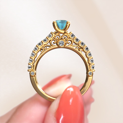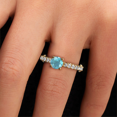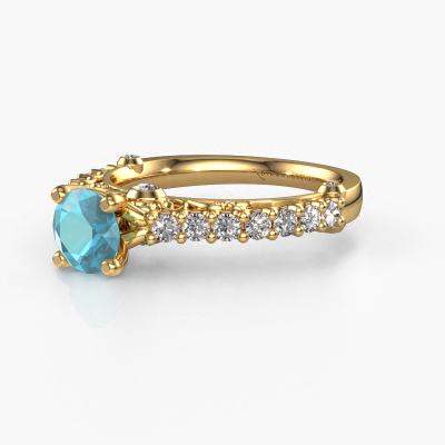 Cette bague de fiançailles spéciales porte le nom Shaunda. Cette bague forgée en or 14 Carat est sertie d’un topaze bleue de 6 mm. Il y a une personne dans votre vie qui quand elle se présente devant vous, votre cœur bat plus vite, ce qui est vraiment unique pour vous. Et c’est précisément cette personne qui mérite quelque chose de spécial, quelque chose d’unique et qui a été conçu spécialement pour elle. Nous soupçonnons que cette bague de fiançailles s'intègre bien dans cette situation. Tous les détails de cette bague de fiançailles unique forgée en or jaune sont composés, travaillés et polis à la main par notre orfèvre dans l'atelier ci-dessous. Notre objectif est que la conception et la composition de la bague de fiançailles renforcent et rayonnent les beaux topaze bleue. Un travail très précis, qui donne finalement à un résultat magnifique. Et c’est exactement ce que nous voulons, cela nous rend très enthousiastes. L’avantage de notre outil de configuration est que vous pouvez concevoir entièrement vos propres bijoux pour créer votre propre bijou. Cette bague de fiançailles solitaire pavé est faite à partir de la combinaison de métaux précieux : de l’or avec de l’or jaune, mais vous pouvez également choisir une autre couleur d’or. Chaque bijou est fabriquées avec passion et amour par l'un de nos maîtres orfèvres.En combinant les dernières techniques modernes, associées à une fabrication ancienne, nous sommes en mesure de fabriquer nos bagues de fiançailles dans notre propre studio. Chaque bijou est fabriqué sur commande. Ceci est avantageux car nous sommes en mesure de vous proposer un prix que vous ne trouverez nulle part ailleurs.Notre équipe de designers talentueux et passionnés ajoute chaque jour de nouveaux modèles bague de fiançailles à notre collection en ligne. Notre objectif est de pouvoir vous offrir une grande variété de bijoux. N'hésitez pas à demander un devis si vous avez des souhaits spécifiques pour votre bague de fiançailles. Nous garantissons de vous faire une offre que vous ne pourrez pas refuser.Pour vous faciliter la tâche, vous pouvez facilement nous retourner tout bijou commandé dans les 30 jours suivant la livraison.