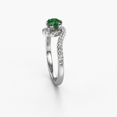 Cette bague de fiançailles porte le nom Elli. Cette bague de fiançailles élégants est forgée en or et est sertie d’un emeraude de 5 mm. Cette bague de fiançailles solitaire pavé et forgée en platine unique est un pur travail d’art ! Tous les petits détails ont été fabriqués avec beaucoup de patience et de passion par notre orfèvre. Ce métier nécessite un œil expert et une main habile pour assembler cette bague de fiançailles avec la plus grande précision. Et ce travail est précisément ce qui enthousiasme nos orfèvres ! Les plus beaux émeraudes sont sertis de manière large, de telle sorte qu'ils puissent rendre un effet encore meilleurs. Cela donne donc une allure supplémentaire à la bague de fiançailles. La bague de fiançailles est unique en raison de sa pierre précieuse naturelle, que nous avons spécialement sélectionnée pour cette bague. De plus, vous pouvez choisir vous-même la composition du métal précieux de votre bague. Vous aurez donc créé une bague de fiançailles unique pour la femmes la plus unique de votre vie ! Ce bijou est spécialement conçues pour vous, avec une attention particulière portée aux détails et au design.Saviez-vous que nous offrons la garantie du meilleur prix pour votre bague de fiançailles? Cela est possible car tous nos bijoux sont fabriqués à la main dans notre propre atelier. Nous n'avons pas de frais de stocks qui sont coûteux, et nous fabriquons votre bague uniquement une fois que vous l'avez commandée. Grâce au fait que nous ayons toute la production du bijou en main, nous pouvons vous informer sur toutes les caractéristiques de cette bague de fiançailles. C’est précisément parce que l’achat d’une bague en ligne est une expérience excitante que nous comprenons qu’il est plus confortable pour vous de connaître toutes les caractéristiques de votre bague.Notre équipe de designers talentueux et passionnés ajoute chaque jour de nouveaux modèles bague de fiançailles à notre collection en ligne. Notre objectif est de pouvoir vous offrir une grande variété de bijoux. N'hésitez pas à demander un devis si vous avez des souhaits spécifiques pour votre bague de fiançailles. Nous garantissons de vous faire une offre que vous ne pourrez pas refuser.Pour vous faciliter la tâche, vous pouvez facilement nous retourner tout bijou commandé dans les 30 jours suivant la livraison.