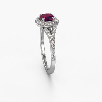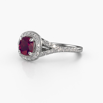 La bague de fiançailles mentionnée ci-dessus est nommée Pamela CUS. Nous appelons ce type de bague de fiançailles une bague Halo. La bague de fiançailles est forgée en or et comporte un rhodolite coussin de la de 5.5 mm et autour duquel sont sertis de petits diamants synthétiques. La largeur de cette bague de fiançailles solitaire pavé forgée en platine luxes vient des plus petites pierres précieuses qui sont serties autour du large rhodolite central. C’est également ce à partir de quoi cette belle bague de fiançailles tire son nom : solitaire pavé signifie halo et c’est aussi l’effet que rendent les pierres précieuses plus petites. Cependant, ces pierres précieuses plus petites doivent toutes être serties de la même manière, afin que la lumière ne soit pas seulement introduite dans le rhodolite et qu’un véritable halo de lumière soit créé. Et c'est ce que font nos maîtres orfèvres. Avec la plus grande précision, chaque rhodolite soigneusement sélectionné est placé à la main dans la bague de fiançailles. Encore et encore, la bague de fiançailles est maintenue à la lumière pour voir si l'effet spécial est toujours visible. Le résultat est une bague de fiançailles unique, où le rhodolite choisi devient littéralement le centre brillants. Vous pouvez imaginer que cette bague de fiançailles est vraiment une bague de fiançailles significative à offrir à votre amour de la vie ! Le jour où vous montrez qu’elle est votre centre brillants ! Saviez-vous que nous offrons la garantie du meilleur prix pour votre bague de fiançailles? Cela est possible car tous nos bijoux sont fabriqués à la main dans notre propre atelier. Nous n'avons pas de frais de stocks qui sont coûteux, et nous fabriquons votre bague uniquement une fois que vous l'avez commandée. Grâce au fait que nous ayons toute la production du bijou en main, nous pouvons vous informer sur toutes les caractéristiques de cette bague de fiançailles. C’est précisément parce que l’achat d’une bague en ligne est une expérience excitante que nous comprenons qu’il est plus confortable pour vous de connaître toutes les caractéristiques de votre bague.Notre équipe ajoute quotidiennement de nouveaux modèles à notre collection en ligne. Nos designers et orfèvres travaillent ensemble pour créer le meilleur design. Nous nous efforçons d'offrir une collection diversifiée de bijoux. Peut-être avez-vous déjà en tête un bijou en particulier ? Un bijou que vous avez trouvé quelque part. Veuillez nous contacter pour une consultation gratuite. Nous vous ferons une offre, basée sur un rapport qualité / prix juste, qui vous déconcertera.Pour vous faciliter la tâche, vous pouvez facilement nous retourner tout bijou commandé dans les 30 jours suivant la livraison.