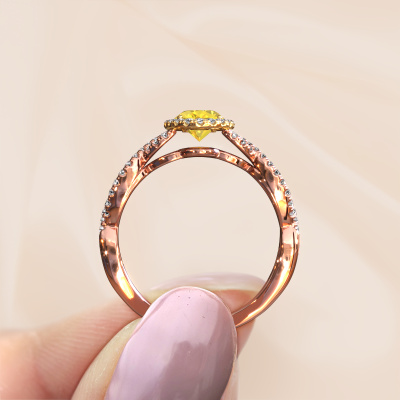 Cette bague de fiançailles porte le nom Dionne ovl. Cette bague de fiançailles torsadée est forgée en or 14 Carat et est sertie d’un saphir jaune de 7x5 mm. Cette bague de fiançailles solitaire pavé et forgée en or rose unique est un pur travail d’art ! Tous les petits détails ont été fabriqués avec beaucoup de patience et de passion par notre orfèvre. Ce métier nécessite un œil expert et une main habile pour assembler cette bague de fiançailles avec la plus grande précision. Et ce travail est précisément ce qui enthousiasme nos orfèvres ! Les plus beaux saphirs jaunes sont sertis de manière large, de telle sorte qu'ils puissent rendre un effet encore meilleurs. Cela donne donc une allure supplémentaire à la bague de fiançailles. La bague de fiançailles est unique en raison de sa pierre précieuse naturelle, que nous avons spécialement sélectionnée pour cette bague. De plus, vous pouvez choisir vous-même la composition du métal précieux de votre bague. Vous aurez donc créé une bague de fiançailles unique pour la femmes la plus unique de votre vie ! Ce bijou est unique, car vous pouvez concevoir ces bagues en fonction de vos souhaits.Nos orfèvres ne fabriqueront votre bague de fiançailles qu'une fois que vous l'aurez commandée. Nous ne faisons pas de stock. L'avantage de cela est que nous n'avons pas à inclure les frais de stockage dans nos prix, et nous pouvons donc vous offrir des bijoux à un prix très bas.Notre équipe ajoute quotidiennement de nouveaux modèles à notre collection en ligne. Nos designers et orfèvres travaillent ensemble pour créer le meilleur design. Nous nous efforçons d'offrir une collection diversifiée de bijoux. Peut-être avez-vous déjà en tête un bijou en particulier ? Un bijou que vous avez trouvé quelque part. Veuillez nous contacter pour une consultation gratuite. Nous vous ferons une offre, basée sur un rapport qualité / prix juste, qui vous déconcertera.Pour vous faciliter la tâche, vous pouvez facilement nous retourner tout bijou commandé dans les 30 jours suivant la livraison.