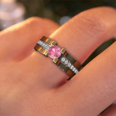 Cette bague de fiançailles porte le nom Myrthe. Cette bague de fiançailles gracieuses est forgée en or 14 Carat et est sertie d’un saphir rose de 5 mm. Cette bague de fiançailles solitaire pavé et forgée en or blanc unique est un pur travail d’art ! Tous les petits détails ont été fabriqués avec beaucoup de patience et de passion par notre orfèvre. Ce métier nécessite un œil expert et une main habile pour assembler cette bague de fiançailles avec la plus grande précision. Et ce travail est précisément ce qui enthousiasme nos orfèvres ! Les plus beaux saphirs roses sont sertis de manière large, de telle sorte qu'ils puissent rendre un effet encore meilleurs. Cela donne donc une allure supplémentaire à la bague de fiançailles. La bague de fiançailles est unique en raison de sa pierre précieuse naturelle, que nous avons spécialement sélectionnée pour cette bague. De plus, vous pouvez choisir vous-même la composition du métal précieux de votre bague. Vous aurez donc créé une bague de fiançailles unique pour la femmes la plus unique de votre vie ! Ce bijou est spécialement conçues pour vous, avec une attention particulière portée aux détails et au design.Nos orfèvres ne fabriqueront votre bague de fiançailles qu'une fois que vous l'aurez commandée. Nous ne faisons pas de stock. L'avantage de cela est que nous n'avons pas à inclure les frais de stockage dans nos prix, et nous pouvons donc vous offrir des bijoux à un prix très bas.Notre équipe de designers talentueux et passionnés ajoute chaque jour de nouveaux modèles bague de fiançailles à notre collection en ligne. Notre objectif est de pouvoir vous offrir une grande variété de bijoux. N'hésitez pas à demander un devis si vous avez des souhaits spécifiques pour votre bague de fiançailles. Nous garantissons de vous faire une offre que vous ne pourrez pas refuser.Pour vous faciliter la tâche, vous pouvez facilement nous retourner tout bijou commandé dans les 30 jours suivant la livraison.