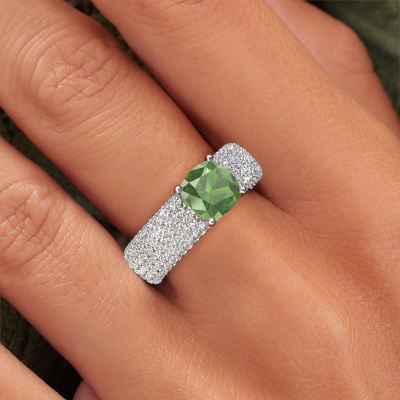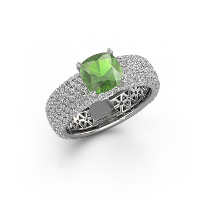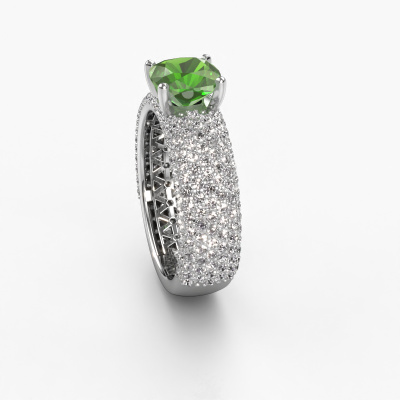 Cette bague de fiançailles porte le nom Darcy. Cette bague de fiançailles pavé est forgée en or et est sertie d’un vert tourmaline de 7 mm. Cette bague de fiançailles solitaire pavé et forgée en platine unique est un pur travail d’art ! Tous les petits détails ont été fabriqués avec beaucoup de patience et de passion par notre orfèvre. Ce métier nécessite un œil expert et une main habile pour assembler cette bague de fiançailles avec la plus grande précision. Et ce travail est précisément ce qui enthousiasme nos orfèvres ! Les plus beaux vert tourmaline sont sertis de manière large, de telle sorte qu'ils puissent rendre un effet encore meilleurs. Cela donne donc une allure supplémentaire à la bague de fiançailles. La bague de fiançailles est unique en raison de sa pierre précieuse naturelle, que nous avons spécialement sélectionnée pour cette bague. De plus, vous pouvez choisir vous-même la composition du métal précieux de votre bague. Vous aurez donc créé une bague de fiançailles unique pour la femmes la plus unique de votre vie ! Ce bijou est unique, car vous pouvez concevoir ces bagues en fonction de vos souhaits.Puisque nous concevons et livrons nos propres bijoux, nous sommes en mesure de vous proposer une bague de fiançailles à un prix que vous ne pourrez pas trouver ailleurs. Une alliance est fabriquée sur commande, ce qui permet d'éviter les excédents de matériel et nous permet de vous proposer une superbe offre de prix. Nous comprenons qu'acheter votre bague de fiançailles en ligne soit un risque, mais nous vous assistons volontiers dans le processus de conception, en tenant compte de votre budget.Notre équipe ajoute quotidiennement de nouveaux modèles à notre collection en ligne. Nos designers et orfèvres travaillent ensemble pour créer le meilleur design. Nous nous efforçons d'offrir une collection diversifiée de bijoux. Peut-être avez-vous déjà en tête un bijou en particulier ? Un bijou que vous avez trouvé quelque part. Veuillez nous contacter pour une consultation gratuite. Nous vous ferons une offre, basée sur un rapport qualité / prix juste, qui vous déconcertera.Pour vous faciliter la tâche, vous pouvez facilement nous retourner tout bijou commandé dans les 30 jours suivant la livraison.