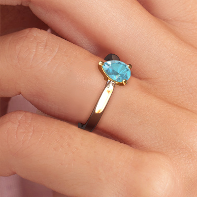 Nous avons donné le nom Mignon per 1 à la bague de fiançailles mentionnée ci-dessous. Ce type de bague de fiançailles est appelée une bague de fiançailles solitaire car elle ne contient qu’une seule pierre précieuse. La bague de fiançailles est forgée en or 14 Carat et comporte un topaze bleue poire d’une de 7x5 mm. L’avantage de notre outil de configuration est que vous pouvez choisir les éléments de votre propres bijou pour créer vous-même votre propre bijou. Cette bague de fiançailles solitaire est faite à partir d’une combinaison de métal précieux d’or et d’or jaune, mais vous pouvez également choisir un or d’une autre couleur. Chaque bijou est faite pour briller sur votre doigt, chaque bijou est fabriqué à la main par nos orfèvres. La bague de fiançailles solitaire est une large bague de fiançailles. C'est précisément grâce au fait que le sertissage de chaton soit ouvert que l'incidence de la lumière crée un effet magnifique sur la pierre précieuse. Puisque la pierre précieuse choisie est sertie en élévation sur la bague de fiançailles, cette bague de fiançailles classiques attirera tous les regards une loyautés finie. Nous fabriquerons tous les détails de cette bague de fiançailles solitaire avec le plus grand soin, afin que vous puissiez bientôt couronner votre demande en mariage avec une bague unique, en particulier pour l'amour de votre vie ! Nos orfèvres ne fabriqueront votre bague de fiançailles qu'une fois que vous l'aurez commandée. Nous ne faisons pas de stock. L'avantage de cela est que nous n'avons pas à inclure les frais de stockage dans nos prix, et nous pouvons donc vous offrir des bijoux à un prix très bas.Notre équipe ajoute quotidiennement de nouveaux modèles à notre collection en ligne. Nos designers et orfèvres travaillent ensemble pour créer le meilleur design. Nous nous efforçons d'offrir une collection diversifiée de bijoux. Peut-être avez-vous déjà en tête un bijou en particulier ? Un bijou que vous avez trouvé quelque part. Veuillez nous contacter pour une consultation gratuite. Nous vous ferons une offre, basée sur un rapport qualité / prix juste, qui vous déconcertera.Pour vous faciliter la tâche, vous pouvez facilement nous retourner tout bijou commandé dans les 30 jours suivant la livraison.