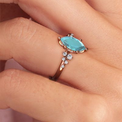 Le nom de cette bague de fiançailles est Emma MRQ. Elle est forgée en or 14 Carat et est sertie d'un topaze bleue de 10x5 mm. Comment décririez-vous le style de l'amour de votre vie ? Est-ce qu'elle aime quelque chose qui est juste un peu plus différent que d'habitude ? Cette bague de fiançailles forgée en or rose avec spéciales est une superbe bague que vous pouvez personnaliser à votre guise. Un topaze bleue est utilisé dans cette bague de fiançailles tendances. Ces topaze bleue ont été sélectionnés avec soin, car nous pensons que sur votre bague de fiançailles, seule les plus belle pierre précieuses peuvent y briller, n'est-ce pas ? Ce bijou est faite spécialement pour vous, avec une attention particulière portée aux détails et au design.Saviez-vous que nous offrons la garantie du meilleur prix pour votre bague de fiançailles? Cela est possible car tous nos bijoux sont fabriqués à la main dans notre propre atelier. Nous n'avons pas de frais de stocks qui sont coûteux, et nous fabriquons votre bague uniquement une fois que vous l'avez commandée. Grâce au fait que nous ayons toute la production du bijou en main, nous pouvons vous informer sur toutes les caractéristiques de cette bague de fiançailles. C’est précisément parce que l’achat d’une bague en ligne est une expérience excitante que nous comprenons qu’il est plus confortable pour vous de connaître toutes les caractéristiques de votre bague. Avez-vous déjà des bague de fiançailles spécifiques en tête ? Une bague de fiançailles que vous avez vu quelque part. N'hésitez pas à nous faire part de vos souhaits et nous transformerons votre design en des bague de fiançailles uniques. Vous êtes en mesure de suivre l'évolution de la conception de vos bague de fiançailles car nous utilisons des dessins en 3D. Cela vous donnera un aperçu réaliste de votre design. Nous vous enverrons volontiers une offre sans engagement basée sur un rapport qualité / prix juste. Elle va vous étonner.Pour vous faciliter la tâche, vous pouvez facilement nous retourner tout bijou commandé dans les 30 jours suivant la livraison.