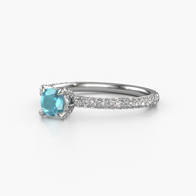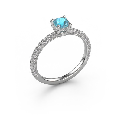 La bague de fiançailles mentionnée ci-dessus a été nommée Saskia 2 cus. Ce type de bague de fiançailles est appelé une bague de fiançailles solitaire pavé car elle ne comporte qu’une seule pierre centrale et les tiges de la bague de fiançailles sont également pleins. La bague de fiançailles est faite dans une combinaison d'or et d’platine et a un topaze bleue coussin d’une de 4.5 mm, et des diamants synthétiques sont sertis sur les épaules de l’anneau. Chaque bijou est faite spécialement pour vous, avec une attention particulière portée aux détails et au design. Cette bague de fiançailles solitaire pavé forgée en platine contemporains a un beau topaze bleue coussin comme pierre centrale, avec plus de topaze bleue sertis dans la bague pour accentuer encore plus la présence de la pierre centrale. Le sertissage à griffes autour du topaze bleue étant ouvert, le topaze bleue capte la lumière de tous les côtés et brille de manière optimale. Ci-dessus, vous pouvez voir comment notre orfèvre travaille la bague de fiançailles avec une extrême précision dans les moindres détails, de telle sorte que le topaze bleue élevé puisse attirer tous les regards. Quelle belle bague de fiançailles à offrir lors de votre demande en mariage à l'amour de votre vie, à votre centre rayonnant ! Vous avez peut-être remarqué que nos prix sont en moyenne inférieurs de 30% à ceux d'un autre bijoutier. Et ce alors que la qualité de nos bijoux est même plus élevée dans la plupart des cas ! En effet, nos orfèvres fabriquent votre bague de fiançailles directement dans notre propre atelier. Cela signifie que nous n'avons pas à inclure des frais de stocks coûteux et que nous pouvons travailler n'importe quel détail directement sur votre bague de fiançailles.Notre équipe de designers talentueux et passionnés ajoute chaque jour de nouveaux modèles bague de fiançailles à notre collection en ligne. Notre objectif est de pouvoir vous offrir une grande variété de bijoux. N'hésitez pas à demander un devis si vous avez des souhaits spécifiques pour votre bague de fiançailles. Nous garantissons de vous faire une offre que vous ne pourrez pas refuser.Pour vous faciliter la tâche, vous pouvez facilement nous retourner tout bijou commandé dans les 30 jours suivant la livraison.