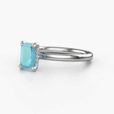 Nous avons donné le nom Simone EME 2 à la bague de fiançailles mentionnée ci-dessous. Ce type de bague de fiançailles s'appelle une bague de fiançailles Solitaire car elle ne contient qu’une seule pierre précieuse. La bague de fiançailles est forgée en or 14 Carat et comporte un topaze bleue taille émeraude d’une de 7x5 mm. Cette belle bague de fiançailles solitaire forgée en or blanc traditionnelles est ornée d'un magnifique topaze bleue taille émeraude qui rendra votre demande en mariage très spéciale. Le sertissage chaton ouvert crée un magnifique effet de lumière sur le diamants. Saviez-vous que le diamants symbolise l'amour et la fidélité éternels ? C'est précisément la raison pour laquelle c'est une magnifique pierre précieuse à mettre au centre. Notre orfèvre place la pierre précieuse en élévation sur la bague, ce qui la fera attirer tous les regards. Chaque bijou est fabriquée par une équipe d'orfèvres et de designers motivés. Cela permettra à cette pièce unique d'attirer tous les regards.Qu'y a-t-il dorénavant de plus beau qu'une bague de fiançailles traditionnelles conçue par vous-même et fabriquée à la main par nous. Vous pouvez personnaliser chaque modèle avec les différents métaux précieux et pierres précieuses. De cette façon, vous pourrez créer une bague de fiançailles unique. Cette bague peut être mise en place de plusieurs façons. Bien sûr, vous pouvez toujours nous contacter et nous serons heureux de vous aider à composer votre bague de fiançailles traditionnelles Simone EME 2. Vous aimez le design, mais vous souhaitez tout de même quelque chose qui vous convienne plus, ou bien vous souhaitez une pierre précieuse dans les bijoux que vous ne pouvez pas choisir sur notre site, contactez-nous et nous vous aiderons.Avez-vous déjà des bague de fiançailles spécifiques en tête ? Une bague de fiançailles que vous avez vu quelque part. N'hésitez pas à nous faire part de vos souhaits et nous transformerons votre design en des bague de fiançailles uniques. Vous êtes en mesure de suivre l'évolution de la conception de vos bague de fiançailles car nous utilisons des dessins en 3D. Cela vous donnera un aperçu réaliste de votre design. Nous vous enverrons volontiers une offre sans engagement basée sur un rapport qualité / prix juste. Elle va vous étonner.Pour vous faciliter la tâche, vous pouvez facilement nous retourner tout bijou commandé dans les 30 jours suivant la livraison.