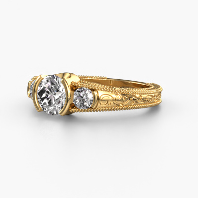 Nous avons donné le nom Tasia à cette bague de fiançailles. Cette bague de fiançailles filigranes forgée en or 14 Carat est sertie d’un diamant de 1.360 crt. Votre petite amie a-t-elle un faible pour le vintage ? Vous pouvez donc être sûr que cette bague de fiançailles forgée en or jaune conviendra à son style ! Un nouveau modèle basé sur des motifs vintage. Un peu de rêve, un beau design, surtout si vous l’ajustez encore plus à votre goût. De magnifiques diamants ont été sertis sur cette bague de fiançailles trois pierres vintage. Comme vous pouvez le constater, vous pouvez choisir vous-même une pierre précieuse qui convient à votre petite amie. Chaque pierre précieuse est soigneusement sélectionnée par nos commerçants du monde entier. Notre orfèvre ne veut travailler que les plus belles pierres précieuses sur votre bijou. Après tout, c'est la couronne de son travail ! Chaque bijou est faite avec passion et amour par l'un de nos maîtres orfèvres.En combinant les dernières techniques modernes, associées à une fabrication ancienne, nous sommes en mesure de fabriquer nos bagues de fiançailles dans notre propre studio. Chaque bijou est fabriqué sur commande. Ceci est avantageux car nous sommes en mesure de vous proposer un prix que vous ne trouverez nulle part ailleurs.Notre équipe ajoute quotidiennement de nouveaux modèles à notre collection en ligne. Nos designers et orfèvres travaillent ensemble pour créer le meilleur design. Nous nous efforçons d'offrir une collection diversifiée de bijoux. Peut-être avez-vous déjà en tête un bijou en particulier ? Un bijou que vous avez trouvé quelque part. Veuillez nous contacter pour une consultation gratuite. Nous vous ferons une offre, basée sur un rapport qualité / prix juste, qui vous déconcertera.Pour vous faciliter la tâche, vous pouvez facilement nous retourner tout bijou commandé dans les 30 jours suivant la livraison.
