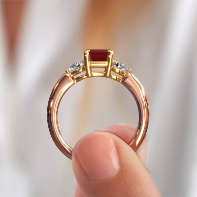Cette bague de fiançailles de bon goût porte le nom Chanou EME. Cette bague forgée en or 14 Carat est sertie d’un rubis de 7.5x5.5 mm. Il y a une personne dans votre vie qui quand elle se présente devant vous, votre cœur bat plus vite, ce qui est vraiment unique pour vous. Et c’est précisément cette personne qui mérite quelque chose de spécial, quelque chose d’unique et qui a été conçu spécialement pour elle. Nous soupçonnons que cette bague de fiançailles s'intègre bien dans cette situation. Tous les détails de cette bague de fiançailles unique forgée en or rose sont composés, travaillés et polis à la main par notre orfèvre dans l'atelier ci-dessous. Notre objectif est que la conception et la composition de la bague de fiançailles renforcent et rayonnent les beaux rubis. Un travail très précis, qui donne finalement à un résultat magnifique. Et c’est exactement ce que nous voulons, cela nous rend très enthousiastes. L’avantage de notre outil de configuration est que vous pouvez concevoir entièrement vos propres bijoux pour créer votre propre bijou. Cette bague de fiançailles trois pierres est faite à partir de la combinaison de métaux précieux : de l’or avec de l’or jaune, mais vous pouvez également choisir une autre couleur d’or. Chaque bijou est fabriquées spécialement pour vous par nos maîtres orfèvres dans notre propre atelier.En combinant les dernières techniques modernes, associées à une fabrication ancienne, nous sommes en mesure de fabriquer nos bagues de fiançailles dans notre propre studio. Chaque bijou est fabriqué sur commande. Ceci est avantageux car nous sommes en mesure de vous proposer un prix que vous ne trouverez nulle part ailleurs.Notre équipe de designers talentueux et passionnés ajoute chaque jour de nouveaux modèles bague de fiançailles à notre collection en ligne. Notre objectif est de pouvoir vous offrir une grande variété de bijoux. N'hésitez pas à demander un devis si vous avez des souhaits spécifiques pour votre bague de fiançailles. Nous garantissons de vous faire une offre que vous ne pourrez pas refuser.Pour vous faciliter la tâche, vous pouvez facilement nous retourner tout bijou commandé dans les 30 jours suivant la livraison.