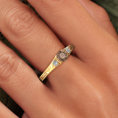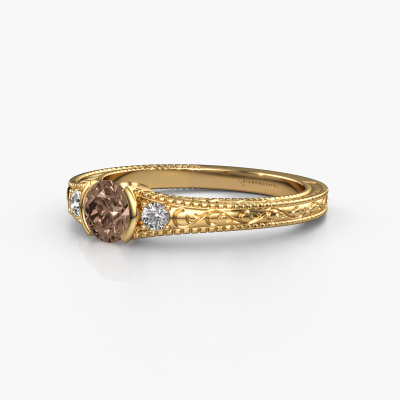 Nous avons donné le nom Anamaria à cette bague de fiançailles. Cette bague forgée en or 14 Carat est sertie d’un diamant brun de 0.59 crt. Cette bague est une large bague vintage forgée en or jaune unique qui fera certainement briller l’amour de votre vie ! Et c'est exactement ce que nous avons comme objectif. Un beau diamant brun est serti dans cette bague de fiançailles vintage. Vous pouvez, bien entendu, utiliser chaque pierre précieuses que nous proposons sur notre site La pierre précieuse sera sélectionnée avec soin, car nous pensons que seule la plus belle des pierres précieuses peut briller sur votre bague de fiançailles filigranes, qu’en dites-vous ? Notre orfèvre fabrique votre bague de fiançailles dans notre propre atelier et place le diamant brun dans l'anneau de la bague avec une précision extrême. Donc, elle est travaillée et polie jusqu'à ce que le résultat désiré soit visible : la bague de fiançailles parfaite pour l'amour de votre vie ! Ce bijou est fabriquée spécialement pour vous par nos maîtres orfèvres dans notre propre atelier.Vous avez peut-être remarqué que nos prix sont en moyenne inférieurs de 30% à ceux d'un autre bijoutier. Et ce alors que la qualité de nos bijoux est même plus élevée dans la plupart des cas ! En effet, nos orfèvres fabriquent votre bague de fiançailles directement dans notre propre atelier. Cela signifie que nous n'avons pas à inclure des frais de stocks coûteux et que nous pouvons travailler n'importe quel détail directement sur votre bague de fiançailles.Notre équipe ajoute quotidiennement de nouveaux modèles à notre collection en ligne. Nos designers et orfèvres travaillent ensemble pour créer le meilleur design. Nous nous efforçons d'offrir une collection diversifiée de bijoux. Peut-être avez-vous déjà en tête un bijou en particulier ? Un bijou que vous avez trouvé quelque part. Veuillez nous contacter pour une consultation gratuite. Nous vous ferons une offre, basée sur un rapport qualité / prix juste, qui vous déconcertera.Pour vous faciliter la tâche, vous pouvez facilement nous retourner tout bijou commandé dans les 30 jours suivant la livraison.