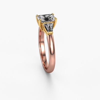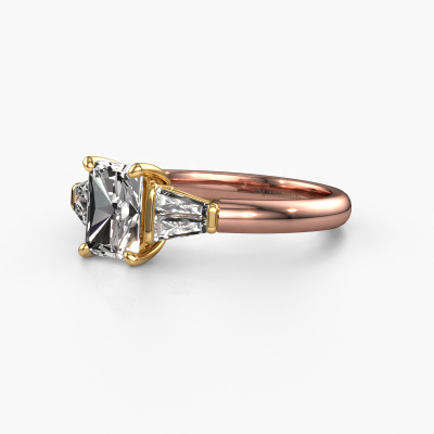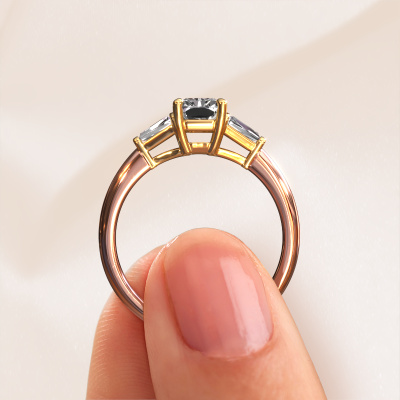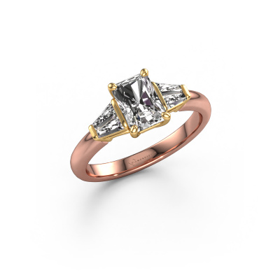 Cette bague de fiançailles porte le nom Kina RAD. Cette bague de fiançailles gracieuses est forgée en or 14 Carat et est sertie d’un diamant synthétique de 1.40 crt. Cette bague de fiançailles trois pierres et forgée en or rose unique est un pur travail d’art ! Tous les petits détails ont été fabriqués avec beaucoup de patience et de passion par notre orfèvre. Ce métier nécessite un œil expert et une main habile pour assembler cette bague de fiançailles avec la plus grande précision. Et ce travail est précisément ce qui enthousiasme nos orfèvres ! Les plus beaux diamants synthétiques sont sertis de manière large, de telle sorte qu'ils puissent rendre un effet encore meilleurs. Cela donne donc une allure supplémentaire à la bague de fiançailles. La bague de fiançailles est unique en raison de sa pierre précieuse naturelle, que nous avons spécialement sélectionnée pour cette bague. De plus, vous pouvez choisir vous-même la composition du métal précieux de votre bague. Vous aurez donc créé une bague de fiançailles unique pour la femmes la plus unique de votre vie ! Ce bijou est faite spécialement pour vous, avec une attention particulière portée aux détails et au design.Saviez-vous que nous offrons la garantie du meilleur prix pour votre bague de fiançailles? Cela est possible car tous nos bijoux sont fabriqués à la main dans notre propre atelier. Nous n'avons pas de frais de stocks qui sont coûteux, et nous fabriquons votre bague uniquement une fois que vous l'avez commandée. Grâce au fait que nous ayons toute la production du bijou en main, nous pouvons vous informer sur toutes les caractéristiques de cette bague de fiançailles. C’est précisément parce que l’achat d’une bague en ligne est une expérience excitante que nous comprenons qu’il est plus confortable pour vous de connaître toutes les caractéristiques de votre bague.Avez-vous déjà des bague de fiançailles spécifiques en tête ? Une bague de fiançailles que vous avez vu quelque part. N'hésitez pas à nous faire part de vos souhaits et nous transformerons votre design en des bague de fiançailles uniques. Vous êtes en mesure de suivre l'évolution de la conception de vos bague de fiançailles car nous utilisons des dessins en 3D. Cela vous donnera un aperçu réaliste de votre design. Nous vous enverrons volontiers une offre sans engagement basée sur un rapport qualité / prix juste. Elle va vous étonner.Pour vous faciliter la tâche, vous pouvez facilement nous retourner tout bijou commandé dans les 30 jours suivant la livraison.