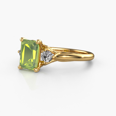 Cette bague de fiançailles porte le nom Laurian EME. Cette bague de fiançailles spéciales est forgée en or 14 Carat et est sertie d’un péridot de 8x6 mm. Cette bague de fiançailles trois pierres et forgée en or jaune unique est un pur travail d’art ! Tous les petits détails ont été fabriqués avec beaucoup de patience et de passion par notre orfèvre. Ce métier nécessite un œil expert et une main habile pour assembler cette bague de fiançailles avec la plus grande précision. Et ce travail est précisément ce qui enthousiasme nos orfèvres ! Les plus beaux péridots sont sertis de manière large, de telle sorte qu'ils puissent rendre un effet encore meilleurs. Cela donne donc une allure supplémentaire à la bague de fiançailles. La bague de fiançailles est unique en raison de sa pierre précieuse naturelle, que nous avons spécialement sélectionnée pour cette bague. De plus, vous pouvez choisir vous-même la composition du métal précieux de votre bague. Vous aurez donc créé une bague de fiançailles unique pour la femmes la plus unique de votre vie ! Ce bijou est unique car vous pouvez entièrement l'assembler à votre guise.En combinant les dernières techniques modernes, associées à une fabrication ancienne, nous sommes en mesure de fabriquer nos bagues de fiançailles dans notre propre studio. Chaque bijou est fabriqué sur commande. Ceci est avantageux car nous sommes en mesure de vous proposer un prix que vous ne trouverez nulle part ailleurs.Notre équipe ajoute quotidiennement de nouveaux modèles à notre collection en ligne. Nos designers et orfèvres travaillent ensemble pour créer le meilleur design. Nous nous efforçons d'offrir une collection diversifiée de bijoux. Peut-être avez-vous déjà en tête un bijou en particulier ? Un bijou que vous avez trouvé quelque part. Veuillez nous contacter pour une consultation gratuite. Nous vous ferons une offre, basée sur un rapport qualité / prix juste, qui vous déconcertera.Pour vous faciliter la tâche, vous pouvez facilement nous retourner tout bijou commandé dans les 30 jours suivant la livraison.