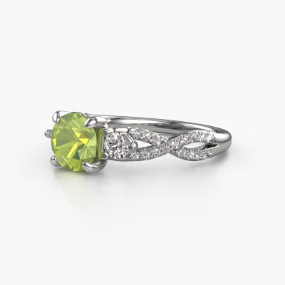 Cette bague de fiançailles porte le nom Marilou RND. Cette bague de fiançailles bandes séparées est forgée en or et est sertie d’un péridot de 6.5 mm. Cette bague de fiançailles trois pierres et forgée en platine unique est un pur travail d’art ! Tous les petits détails ont été fabriqués avec beaucoup de patience et de passion par notre orfèvre. Ce métier nécessite un œil expert et une main habile pour assembler cette bague de fiançailles avec la plus grande précision. Et ce travail est précisément ce qui enthousiasme nos orfèvres ! Les plus beaux péridots sont sertis de manière large, de telle sorte qu'ils puissent rendre un effet encore meilleurs. Cela donne donc une allure supplémentaire à la bague de fiançailles. La bague de fiançailles est unique en raison de sa pierre précieuse naturelle, que nous avons spécialement sélectionnée pour cette bague. De plus, vous pouvez choisir vous-même la composition du métal précieux de votre bague. Vous aurez donc créé une bague de fiançailles unique pour la femmes la plus unique de votre vie ! Ce bijou est spécialement conçues pour vous, avec une attention particulière portée aux détails et au design.Vous avez peut-être remarqué que nos prix sont en moyenne inférieurs de 30% à ceux d'un autre bijoutier. Et ce alors que la qualité de nos bijoux est même plus élevée dans la plupart des cas ! En effet, nos orfèvres fabriquent votre bague de fiançailles directement dans notre propre atelier. Cela signifie que nous n'avons pas à inclure des frais de stocks coûteux et que nous pouvons travailler n'importe quel détail directement sur votre bague de fiançailles.Avez-vous déjà des bague de fiançailles spécifiques en tête ? Une bague de fiançailles que vous avez vu quelque part. N'hésitez pas à nous faire part de vos souhaits et nous transformerons votre design en des bague de fiançailles uniques. Vous êtes en mesure de suivre l'évolution de la conception de vos bague de fiançailles car nous utilisons des dessins en 3D. Cela vous donnera un aperçu réaliste de votre design. Nous vous enverrons volontiers une offre sans engagement basée sur un rapport qualité / prix juste. Elle va vous étonner.Pour vous faciliter la tâche, vous pouvez facilement nous retourner tout bijou commandé dans les 30 jours suivant la livraison.