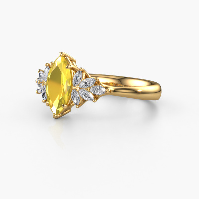 Le nom de cette bague de fiançailles est Fiona MRQ. Elle est forgée en or 14 Carat et est sertie d'un saphir jaune de 10x5 mm. Êtes-vous à la recherche d'une bague de fiançailles forgée en or jaune uniques que vous pourrez adapter à votre goût ? Un saphir jaune est utilisé dans cette bague de fiançailles uniques. Celui-ci a été soigneusement sélectionné pour créer le plus bel effet. Notre orfèvre fabrique votre bague de fiançailles dans notre propre atelier et sertit le saphir jaune dans l'anneau avec une précision extrême. Donc, la bague est travaillée et polie jusqu'à ce que le résultat soit visible : la bague de fiançailles parfaite pour l'amour de votre vie ! Ce bijou est fabriquée spécialement pour vous par nos maîtres orfèvres dans notre propre atelier.En combinant les dernières techniques modernes, associées à une fabrication ancienne, nous sommes en mesure de fabriquer nos bagues de fiançailles dans notre propre studio. Chaque bijou est fabriqué sur commande. Ceci est avantageux car nous sommes en mesure de vous proposer un prix que vous ne trouverez nulle part ailleurs.Notre équipe de designers talentueux et passionnés ajoute chaque jour de nouveaux modèles bague de fiançailles à notre collection en ligne. Notre objectif est de pouvoir vous offrir une grande variété de bijoux. N'hésitez pas à demander un devis si vous avez des souhaits spécifiques pour votre bague de fiançailles. Nous garantissons de vous faire une offre que vous ne pourrez pas refuser.Pour vous faciliter la tâche, vous pouvez facilement nous retourner tout bijou commandé dans les 30 jours suivant la livraison.