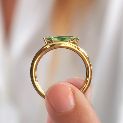 Cette bague de fiançailles porte le nom Floor MRQ. Cette bague de fiançailles forgée en or 14 Carat est sertie d’un vert tourmaline de 11x5.5 mm. Qu'est-ce qui rend votre relation unique ? Qu'est-ce que qui fait que vous souhaitiez qu’elle