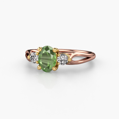 Cette bague de fiançailles porte le nom Amie OVL. Cette bague de fiançailles forgée en or 14 Carat est sertie d’un vert tourmaline de 7x5 mm. Qu'est-ce qui rend votre relation unique ? Qu'est-ce que qui fait que vous souhaitiez qu’elle devienne votre femmes ? Cet anneau unique que vous avez ensemble peut être reflété dans une bague unique. Une bague de fiançailles trois pierres unique qui est seulement créée pour elle. Et c'est la raison pour laquelle cette bague de fiançailles lui ira parfaitement. Chaque détail de cette bague de fiançailles ci-dessous forgée en or rose sertie d’un vert tourmaline est composée, travaillée et polie à la main par notre orfèvre dans notre atelier. Le résultat final est une magnifique bague de fiançailles, unique et parfaitement forgée dans les moindres détails ! Ce résultat est ce que nos orfèvres recherchent à tout prix ! Ce bijou est fabriquées avec passion et amour par l'un de nos maîtres orfèvres.Qu'y a-t-il dorénavant de plus beau qu'une bague de fiançailles fantaisie conçue par vous-même et fabriquée à la main par nous. Vous pouvez personnaliser chaque modèle avec les différents métaux précieux et pierres précieuses. De cette façon, vous pourrez créer une bague de fiançailles unique. Cette bague peut être mise en place de plusieurs façons. Bien sûr, vous pouvez toujours nous contacter et nous serons heureux de vous aider à composer votre bague de fiançailles fantaisie Amie OVL. Vous aimez le design, mais vous souhaitez tout de même quelque chose qui vous convienne plus, ou bien vous souhaitez une pierre précieuse dans les bijoux que vous ne pouvez pas choisir sur notre site, contactez-nous et nous vous aiderons.Avez-vous déjà des bague de fiançailles spécifiques en tête ? Une bague de fiançailles que vous avez vu quelque part. N'hésitez pas à nous faire part de vos souhaits et nous transformerons votre design en des bague de fiançailles uniques. Vous êtes en mesure de suivre l'évolution de la conception de vos bague de fiançailles car nous utilisons des dessins en 3D. Cela vous donnera un aperçu réaliste de votre design. Nous vous enverrons volontiers une offre sans engagement basée sur un rapport qualité / prix juste. Elle va vous étonner.Pour vous faciliter la tâche, vous pouvez facilement nous retourner tout bijou commandé dans les 30 jours suivant la livraison.