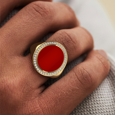 La ovale chevalière Adam 5 ci-dessus est sertie d'un cornaline forme ovale et a toute une tradition. La chevalière était traditionnellement transmise de père en fils. Avec cette ovale chevalière forgée en or jaune, vous pouvez donc créez votre propre tradition. Nous aimerions également vous proposer d’intégrer une gravure, telle qu'un monogramme ou une gravure d'écusson familial. Trouvez plus d'information et les possibilités de gravures dans notre base de connaissances. Vous trouverez les différentes catégories dans la base de connaissances au bas de cette page. Votre tradition commence ici, avec la chevalière forgée exclusives en or jaune Adam 5. La diamants chevalière Adam 5 présentée ici peut être personnalisée selon vos souhaits. Les possibilités offertes par notre configurateur sont très étendues, mais si vous souhaitez ajuster quelque chose à votre chevalière personnelle qui n'est pas proposé en option, vous pouvez toujours nous contacter.Nos designers talentueux ajoutent quotidiennement de nouveaux modèles à notre collection en ligne. Ensemble, ils créent une collection variée des plus beaux bijoux. Si vous préférez créer des bagues selon votre propre conception, n'hésitez pas à demander un devis. Nous vous ferons une offre incroyable, basée sur la qualité et le prix.Nos orfèvres ne fabriqueront votre bague qu'une fois que vous l'aurez commandée. Nous ne faisons pas de stock. L'avantage de cela est que nous n'avons pas à inclure les frais de stockage dans nos prix, et nous pouvons donc vous offrir des bijoux à un prix très bas.Pour vous faciliter la tâche, vous pouvez facilement nous retourner tout bijou commandé dans les 30 jours suivant la livraison.
