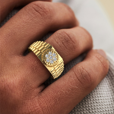 Tout le monde connaît le design de cette marque horlogère bien connue. Avec ses maillons de deux couleurs d’or, cette massives bague Nout forgée en or jaune 14 Carat, convient à l’homme exclusives et accompli. Un homme qui veut faire une déclaration avec une bague pour homme frappante sertie d’un diamant de 0.21 crt. Montrez qui vous êtes ! Nos orfèvres fabriqueront votre bague pour homme sur mesure avec beaucoup de passion et de soin et ce selon vos souhaits. La bague pour homme en or jaune présentée ici peut être ajustée à votre convenance avec le configurateur. Si vous avez certaines idées que vous ne pouvez pas appliquer avec le configurateur, vous pouvez toujours les communiquer à nos créateurs de bijoux. Vous pouvez bien sûr toujours nous poser des questions.De nouveaux modèles de bijoux sont ajoutés à notre collection en ligne quotidiennement. Notre équipe de designers passionnés s'efforce de créer des designs extraordinaires et variés. Avez-vous vu une bague qui vous plait ? N'hésitez pas à nous contacter. Grâce à un bon rapport qualité / prix, nous vous ferons une offre que vous ne pourrez pas refuser !En utilisant nos techniques modernes, nous sommes en mesure de concevoir et de personnaliser les bijoux de la plus haute qualité avec le plus grand soin pour vous. Nos bagues ont toujours un prix inférieur de 30% à celles des autres bijoutiers. Nous fabriquons des bagues à la commande afin de ne pas avoir à garder un stock important. Si vous avez un certain budget, nous serons ravis de vous conseiller tout en le respectant.Pour vous faciliter la tâche, vous pouvez facilement nous retourner tout bijou commandé dans les 30 jours suivant la livraison.