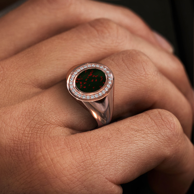 La ovale bague pinky Adam 1 ci-dessus est sertie d'un héliotrope forme ovale et a toute une tradition. La bague pinky était traditionnellement transmise de père en fils. Avec cette ovale bague pinky forgée en or rose, vous pouvez donc créez votre propre tradition. Nous aimerions également vous proposer d’intégrer une gravure, telle qu'un monogramme ou une gravure d'écusson familial. Trouvez plus d'information et les possibilités de gravures dans notre base de connaissances. Vous trouverez les différentes catégories dans la base de connaissances au bas de cette page. Votre tradition commence ici, avec la bague pinky forgée exclusives en or rose Adam 1. Votre chevalière personnelle spéciales Adam 1 que vous vous créez est fabriquée avec amour et passion par nos orfèvres. Préféreriez-vous une option autre que la chevalière en or rose présentée ici ? Vous avez alors diverses options possibles via le configurateur. Si vous n'êtes pas complètement sûr(e), nous serons ravis de vous conseiller !Notre équipe de designers talentueux et passionnés ajoute chaque jour de nouveaux modèles bagues à notre collection en ligne. Notre objectif est de pouvoir vous offrir une grande variété de bijoux. N'hésitez pas à demander un devis si vous avez des souhaits spécifiques pour votre bague. Nous garantissons de vous faire une offre que vous ne pourrez pas refuser.En combinant les dernières techniques modernes, associées à une fabrication ancienne, nous sommes en mesure de fabriquer nos bagues dans notre propre studio. Chaque bijou est fabriqué sur commande. Ceci est avantageux car nous sommes en mesure de vous proposer un prix que vous ne trouverez nulle part ailleurs.Pour vous faciliter la tâche, vous pouvez facilement nous retourner tout bijou commandé dans les 30 jours suivant la livraison.