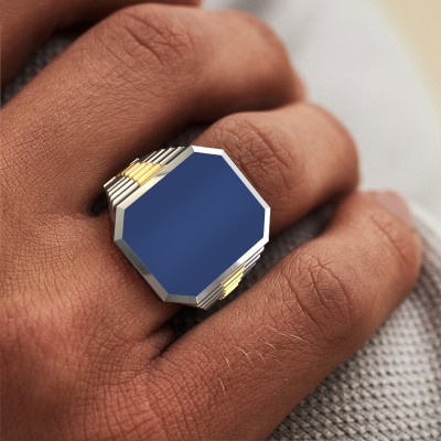 Tout le monde connaît le design de cette marque horlogère bien connue. Avec ses maillons de deux couleurs d’or, cette lourdes bague Brent 5 forgée en or blanc 14 Carat, convient à l’homme modernes et accompli. Un homme qui veut faire une déclaration avec une chevalière frappante sertie d’un lapis lazuli de 18x15 mm. Montrez qui vous êtes ! La cools chevalière Brent 5 présentée ici peut être personnalisée selon vos souhaits. Les possibilités offertes par notre configurateur sont très étendues, mais si vous souhaitez ajuster quelque chose à votre chevalière personnelle qui n'est pas proposé en option, vous pouvez toujours nous contacter.Notre équipe de designers talentueux et passionnés ajoute chaque jour de nouveaux modèles bagues à notre collection en ligne. Notre objectif est de pouvoir vous offrir une grande variété de bijoux. N'hésitez pas à demander un devis si vous avez des souhaits spécifiques pour votre bague. Nous garantissons de vous faire une offre que vous ne pourrez pas refuser.En utilisant nos techniques modernes, nous sommes en mesure de concevoir et de personnaliser les bijoux de la plus haute qualité avec le plus grand soin pour vous. Nos bagues ont toujours un prix inférieur de 30% à celles des autres bijoutiers. Nous fabriquons des bagues à la commande afin de ne pas avoir à garder un stock important. Si vous avez un certain budget, nous serons ravis de vous conseiller tout en le respectant.Pour vous faciliter la tâche, vous pouvez facilement nous retourner tout bijou commandé dans les 30 jours suivant la livraison.