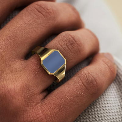 Pour l'homme contemporains qui a du style et qui aime un style extravagant, nous proposons la plate bague Lars 1 forgée en or jaune de 14 Carat avec nicolo bleue. Traditionnellement, les bagues pour auriculaires étaient portées pour montrer un certain statut social. La bague pour auriculaire est donc le choix parfait pour l'homme qui veut se démarquer. Une fois que vous avez conçu votre chevalière Lars 1 avec notre configurateur, nos orfèvres se mettent à sa fabrication pour vous. La fabrication se fait de manière traditionnelle avec passion et soin. De plus, nous travaillons avec des matériaux extraits de façon équitable. Si vous voulez changer quelque chose, vous pouvez le faire avec notre configurateur. Si vous avez des souhaits spécifiques pour votre chevalière, mais si vous ne voyez pas une option qui leur corresponde dans le configurateur, veuillez contacter notre équipe de designers expérimentés.