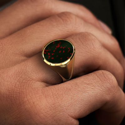 La massives chevalière Herman 4 ci-dessus est sertie d'un héliotrope forme ovale et a toute une tradition. La chevalière était traditionnellement transmise de père en fils. Avec cette massives chevalière forgée en or jaune, vous pouvez donc créez votre propre tradition. Nous aimerions également vous proposer d’intégrer une gravure, telle qu'un monogramme ou une gravure d'écusson familial. Trouvez plus d'information et les possibilités de gravures dans notre base de connaissances. Vous trouverez les différentes catégories dans la base de connaissances au bas de cette page. Votre tradition commence ici, avec la chevalière forgée classiques en or jaune Herman 4. Une fois que vous avez conçu votre chevalière Herman 4 avec notre configurateur, nos orfèvres se mettent à sa fabrication pour vous. La fabrication se fait de manière traditionnelle avec passion et soin. De plus, nous travaillons avec des matériaux extraits de façon équitable. Si vous voulez changer quelque chose, vous pouvez le faire avec notre configurateur. Si vous avez des souhaits spécifiques pour votre chevalière, mais si vous ne voyez pas une option qui leur corresponde dans le configurateur, veuillez contacter notre équipe de designers expérimentés.Notre équipe de designers talentueux et passionnés ajoute chaque jour de nouveaux modèles bagues à notre collection en ligne. Notre objectif est de pouvoir vous offrir une grande variété de bijoux. N'hésitez pas à demander un devis si vous avez des souhaits spécifiques pour votre bague. Nous garantissons de vous faire une offre que vous ne pourrez pas refuser.Devez-vous respecter un certain budget ? N'hésitez pas à nous contacter, nous serons heureux de vous conseiller sur toutes les possibilités. Dans tous les cas, nous offrons toutes les bagues à un prix que vous ne trouverez nulle part ailleurs, car nous ne fabriquerons la bague uniquement lorsque vous la commanderez. Cela nous permet de vous donner la garantie du meilleur prix.Pour vous faciliter la tâche, vous pouvez facilement nous retourner tout bijou commandé dans les 30 jours suivant la livraison.
