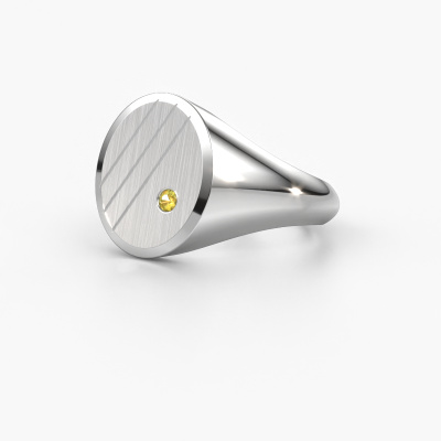 La plate chevalière Wesley 3 ci-dessus est sertie d'un saphir jaune ronds et a toute une tradition. La chevalière était traditionnellement transmise de père en fils. Avec cette plate chevalière forgée en platine, vous pouvez donc créez votre propre tradition. Nous aimerions également vous proposer d’intégrer une gravure, telle qu'un monogramme ou une gravure d'écusson familial. Trouvez plus d'information et les possibilités de gravures dans notre base de connaissances. Vous trouverez les différentes catégories dans la base de connaissances au bas de cette page. Votre tradition commence ici, avec la chevalière forgée traditionnelles en platine Wesley 3. Une fois que vous avez conçu votre chevalière Wesley 3 avec notre configurateur, nos orfèvres se mettent à sa fabrication pour vous. La fabrication se fait de manière traditionnelle avec passion et soin. De plus, nous travaillons avec des matériaux extraits de façon équitable. Si vous voulez changer quelque chose, vous pouvez le faire avec notre configurateur. Si vous avez des souhaits spécifiques pour votre chevalière, mais si vous ne voyez pas une option qui leur corresponde dans le configurateur, veuillez contacter notre équipe de designers expérimentés.De nouveaux modèles de bijoux sont ajoutés à notre collection en ligne quotidiennement. Notre équipe de designers passionnés s'efforce de créer des designs extraordinaires et variés. Avez-vous vu une bague qui vous plait ? N'hésitez pas à nous contacter. Grâce à un bon rapport qualité / prix, nous vous ferons une offre que vous ne pourrez pas refuser !Puisque nous concevons et livrons nos propres bijoux, nous sommes en mesure de vous proposer une bague à un prix que vous ne pourrez pas trouver ailleurs. Une alliance est fabriquée sur commande, ce qui permet d'éviter les excédents de matériel et nous permet de vous proposer une superbe offre de prix. Nous comprenons qu'acheter votre bague en ligne soit un risque, mais nous vous assistons volontiers dans le processus de conception, en tenant compte de votre budget.Pour vous faciliter la tâche, vous pouvez facilement nous retourner tout bijou commandé dans les 30 jours suivant la livraison.
