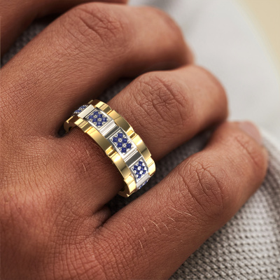 Tout le monde connaît le design de cette marque horlogère bien connue. Avec ses maillons de deux couleurs d’or, cette 2 couleurs bague Ricardo 3 forgée en or blanc 14 Carat, convient à l’homme modernes et accompli. Un homme qui veut faire une déclaration avec une bague pour homme frappante sertie d’un saphir de 1.2 mm. Montrez qui vous êtes ! Nos orfèvres fabriqueront votre bague pour homme sur mesure avec beaucoup de passion et de soin et ce selon vos souhaits. La bague pour homme en or blanc présentée ici peut être ajustée à votre convenance avec le configurateur. Si vous avez certaines idées que vous ne pouvez pas appliquer avec le configurateur, vous pouvez toujours les communiquer à nos créateurs de bijoux. Vous pouvez bien sûr toujours nous poser des questions.