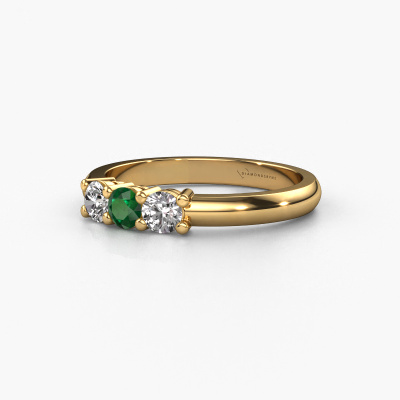 Cette bague style 3 pierres porte le nom de Michelle 3. Ce type de bague s'appelle «Mémoire», car elle est créée avec un profil droit. Cela permet de porter la bague à côté d'autres bagues. Cette bague est en or jaune 14 Carat et contient un emeraude associé à une diamant synthétique de 3.7 mm serties sur l'anneau. Comme vous pouvez le constater, avec cette belle mémoire pour femmes en or jaune, de émeraudes sont sertis les uns à côté des autres sur la bague. Le sens de l'mémoire est littéralement de 'travailler ensemble'. Et c’est exactement ce que font ces pierres précieuses : ensemble, elles créent un effet spécial supplémentaire sur l'anneau avec un anneau classiques ! Une belle symbolique pour un anneau, non ? Tous les émeraudes soigneusement sélectionnés sont placés à la main par notre maître orfèvre. Un travail très précis, qui tire le meilleur parti de notre combinaison unique d'artisanat pur et des techniques d'orfèvre les plus modernes. Toutes les pierres précieuses doivent être serties exactement de la même manière pour diffuser parfaitement la lumière. Par conséquent, l'orfèvre gardera cette bague sous la lumière pour voir si les émeraudes sont placés correctement. Cela demande une main habile et beaucoup de patience, mais le résultat est un véritable chef-d'œuvre. Et c'est ce que nous recherchons ! Devez-vous respecter un certain budget ? N'hésitez pas à nous contacter, nous serons heureux de vous conseiller sur toutes les possibilités. Dans tous les cas, nous offrons toutes les bagues à un prix que vous ne trouverez nulle part ailleurs, car nous ne fabriquerons la bague uniquement lorsque vous la commanderez. Cela nous permet de vous donner la garantie du meilleur prix.