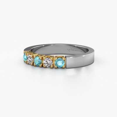 Cette bague style 5 pierres porte le nom de Dana 5. Ce type de bague s'appelle «Mémoire», car elle est créée avec un profil droit. Cela permet de porter la bague à côté d'autres bagues. Cette bague est en or blanc 14 Carat et contient un topaze bleue associé à une diamant de 3 mm serties sur l'anneau. Comme vous pouvez le constater, avec cette belle mémoire pour femmes en or blanc, de topaze bleue sont sertis les uns à côté des autres sur la bague. Le sens de l'mémoire est littéralement de 'travailler ensemble'. Et c’est exactement ce que font ces pierres précieuses : ensemble, elles créent un effet spécial supplémentaire sur l'anneau avec un anneau modernes ! Une belle symbolique pour un anneau, non ? Tous les topaze bleue soigneusement sélectionnés sont placés à la main par notre maître orfèvre. Un travail très précis, qui tire le meilleur parti de notre combinaison unique d'artisanat pur et des techniques d'orfèvre les plus modernes. Toutes les pierres précieuses doivent être serties exactement de la même manière pour diffuser parfaitement la lumière. Par conséquent, l'orfèvre gardera cette bague sous la lumière pour voir si les topaze bleue sont placés correctement. Cela demande une main habile et beaucoup de patience, mais le résultat est un véritable chef-d'œuvre. Et c'est ce que nous recherchons ! Puisque nous concevons et livrons nos propres bijoux, nous sommes en mesure de vous proposer une bague à un prix que vous ne pourrez pas trouver ailleurs. Une alliance est fabriquée sur commande, ce qui permet d'éviter les excédents de matériel et nous permet de vous proposer une superbe offre de prix. Nous comprenons qu'acheter votre bague en ligne soit un risque, mais nous vous assistons volontiers dans le processus de conception, en tenant compte de votre budget. De nouveaux modèles de bijoux sont ajoutés à notre collection en ligne quotidiennement. Notre équipe de designers passionnés s'efforce de créer des designs extraordinaires et variés. Avez-vous vu une bague qui vous plait ? N'hésitez pas à nous contacter. Grâce à un bon rapport qualité / prix, nous vous ferons une offre que vous ne pourrez pas refuser ! Pour vous faciliter la tâche, vous pouvez facilement nous retourner tout bijou commandé dans les 30 jours suivant la livraison.'