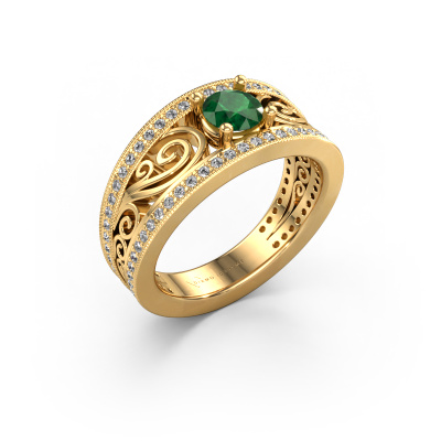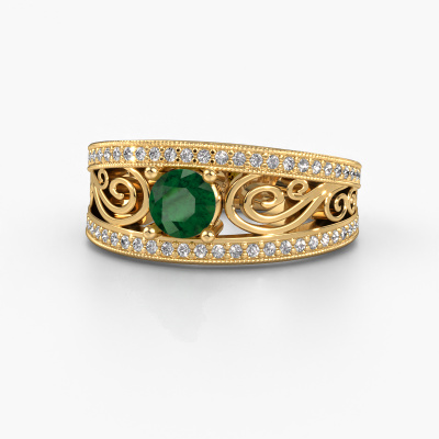 Votre attention est-elle toujours attirée par les articles vintage ? Vous pouvez donc être sûre que cette bague forgée en or jaune vous ira bien ! C'est un nouveau modèle, basé sur des motifs vintage. Un peu de rêve, un beau design ! Surtout si vous l'ajustez encore plus à votre goût. De magnifiques émeraudes sont utilisés dans cette bague ajour. Comme vous pouvez le constater, vous pouvez choisir une pierre précieuse qui convient à votre style. Chaque pierre précieuse est soigneusement sélectionnée par nos commerçants dans le monde entier. Notre orfèvre ne veut utiliser que les plus belles pierres précieuses sur un bijou. C'est la couronne de son travail ! Nos orfèvres fabriquent votre bague sur mesure, à votre goût et avec beaucoup de passion et de soin. Le or jaune bague comme indiqué ici peut être ajusté à votre guise avec l'outil de configuration. Si vous avez des idées que vous ne pouvez pas appliquer avec l'outil de configuration, vous pouvez toujours les partager à nos créateurs de bijoux. Vous pouvez bien sûr toujours nous poser des questions.Nos orfèvres ne fabriqueront votre bague qu'une fois que vous l'aurez commandée. Nous ne faisons pas de stock. L'avantage de cela est que nous n'avons pas à inclure les frais de stockage dans nos prix, et nous pouvons donc vous offrir des bijoux à un prix très bas.Pour vous faciliter la tâche, vous pouvez facilement nous retourner tout bijou commandé dans les 30 jours suivant la livraison.Avez-vous des questions sur la bague ajour anneau Julliana ? Jetez un coup d'œil à notre foire aux questions. Bien sûr, vous pouvez également contacter l'équipe par DiamondsByMe. Nous sommes toujours heureux de vous conseiller !