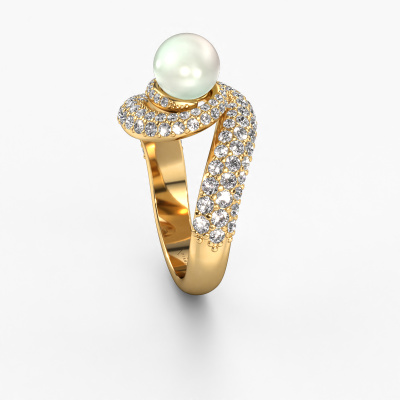 Cette bague unique forgée en or jaune, que nous avons appelée Klasina, est un pur travail d’art ! La bague est faite d'or 14 Carat et est sertie d'un perle blanche sphérique de 7 mm. Les plus petits détails ont été fabriqués avec beaucoup de patience et de passion par notre orfèvre. Ce véritable travail artisanal nécessite un œil expert et une main compétente pour concevoir une bague avec la plus grande précision. Et c'est précisément ce qui enthousiasme nos orfèvres ! Les beaux perles blanches sont mis en place de manière spéciale, de telle sorte à ce qu'ils sortent encore mieux. Cela donne aux bagues pour femmes une allure supplémentaire. La bague est unique en raison de la pierre précieuse naturelle que nous avons spécialement sélectionnée pour cette bague Klasina. Et en choisissant votre métal précieux, vous pouvez créer vous-même une bague unique. Une bague sur mesure exclusives et gracieuse est le cadeau parfait ! De nouveaux designs exquis sont ajoutés quotidiennement par notre équipe d'orfèvres passionnés. Et chaque design peut être personnalisé. Personnalisez simplement les métaux précieux et la couleur des pierres précieuses qui seront utilisées, par exemple. Cela rendra votre design de bague exclusives Klasina vraiment unique !Puisque nous concevons et livrons nos propres bijoux, nous sommes en mesure de vous proposer une bague à un prix que vous ne pourrez pas trouver ailleurs. Une alliance est fabriquée sur commande, ce qui permet d'éviter les excédents de matériel et nous permet de vous proposer une superbe offre de prix. Nous comprenons qu'acheter votre bague en ligne soit un risque, mais nous vous assistons volontiers dans le processus de conception, en tenant compte de votre budget.Pour vous faciliter la tâche, vous pouvez facilement nous retourner tout bijou commandé dans les 30 jours suivant la livraison. Avez-vous des questions ? Souhaitez-vous modifier un design existant avec vos propres idées ? Vous nous donc aussi contacterez. Notre équipe de professionnels se fera un plaisir de vous conseiller dans la création de votre bijou de rêve style exclusive.