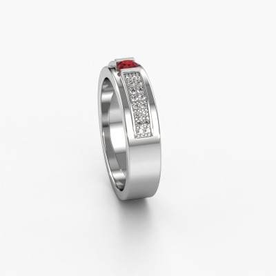 Mable est le nom que nous avons donné à cette bague. Cette bague forgée en or blanc 14 Carat est sertie d'un rubis. Vous recherchez une Bague forgée en or blanc unique et avec un look modernes ? Voici donc une belle bague que vous pouvez aussi ajuster à votre goût. Parfait donc pour une femmes contemporaine et modernes ! Un magnifique rubis est serti dans cette bague élégants. Celui-ci est sélectionné avec soin, car seules les plus belles pierres précieuses de votre bague peuvent la faire briller. Notre orfèvre fabrique votre bague dans notre propre atelier et place le rubis dans l'anneau avec une précision extrême. Donc, il est travaillé et poli jusqu'à ce que le résultat soit visible : la bague parfaite ! En combinant les dernières techniques modernes, associées à une fabrication ancienne, nous sommes en mesure de fabriquer nos bagues dans notre propre studio. Chaque bijou est fabriqué sur commande. Ceci est avantageux car nous sommes en mesure de vous proposer un prix que vous ne trouverez nulle part ailleurs.De nouveaux modèles de bijoux sont ajoutés à notre collection en ligne quotidiennement. Notre équipe de designers passionnés s'efforce de créer des designs extraordinaires et variés. Avez-vous vu une bague qui vous plait ? N'hésitez pas à nous contacter. Grâce à un bon rapport qualité / prix, nous vous ferons une offre que vous ne pourrez pas refuser !Pour vous faciliter la tâche, vous pouvez facilement nous retourner tout bijou commandé dans les 30 jours suivant la livraison.Nous sommes curieux de savoir comment vous allez personnaliser votre bague Mable. Si quelque chose ne vous semble pas tout à fait clair, vous pouvez toujours nous contacter. Nous serons heureux de vous aider !